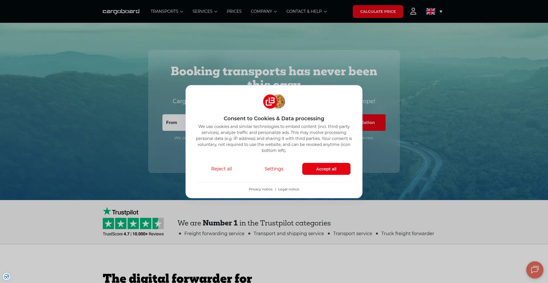 该网站实现符合GDPR或CCPA等隐私法规的cookie同意机制。这表明 cargoboard.com 遵守数据保护标准并为用户提供对个人数据收集实践的控制。