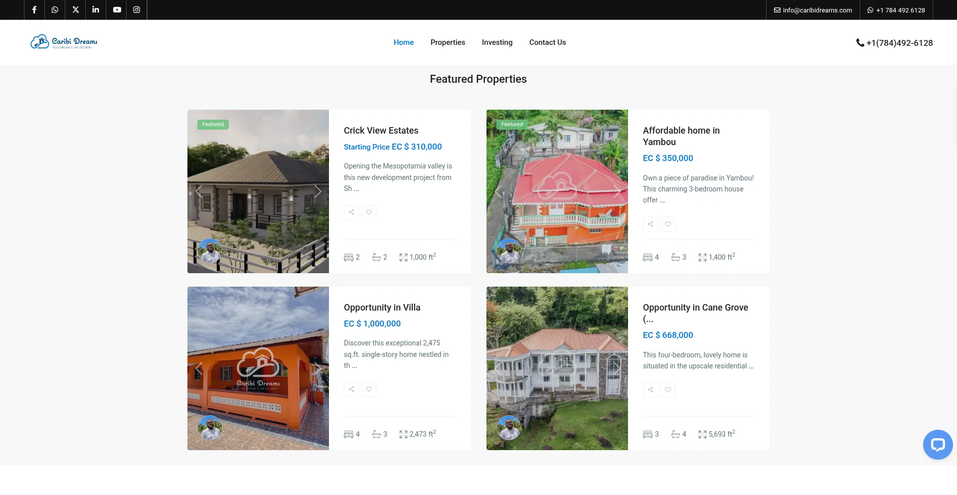 网站上存在社交媒体链接表明 caribidreams.com 在社交媒体上维护官方账户,这是可信度和参与度的积极信号。