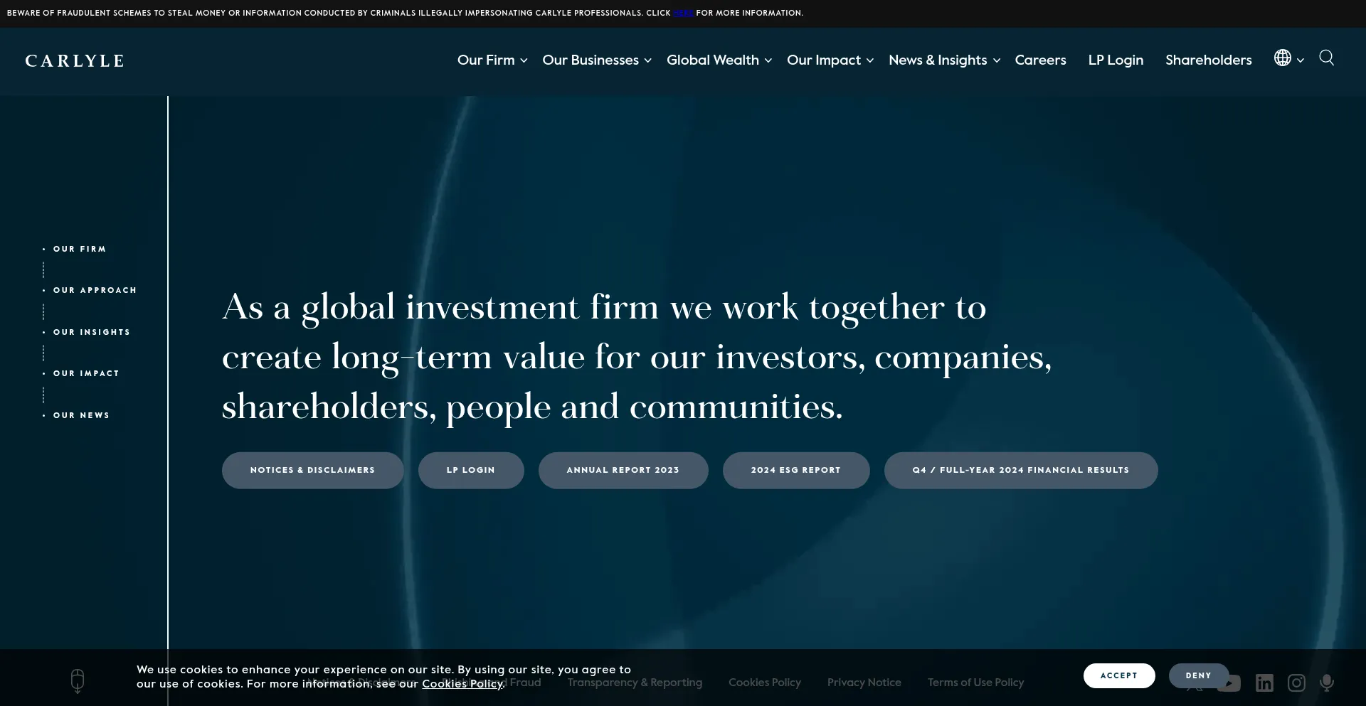 网站上存在社交媒体链接表明 carlyle.com 在社交媒体上维护官方账户,这是可信度和参与度的积极信号。