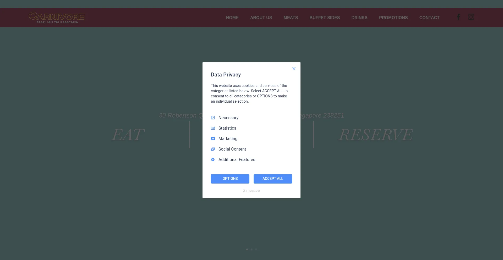 网站上存在社交媒体链接表明 carnivore.com.sg 在社交媒体上维护官方账户,这是可信度和参与度的积极信号。
