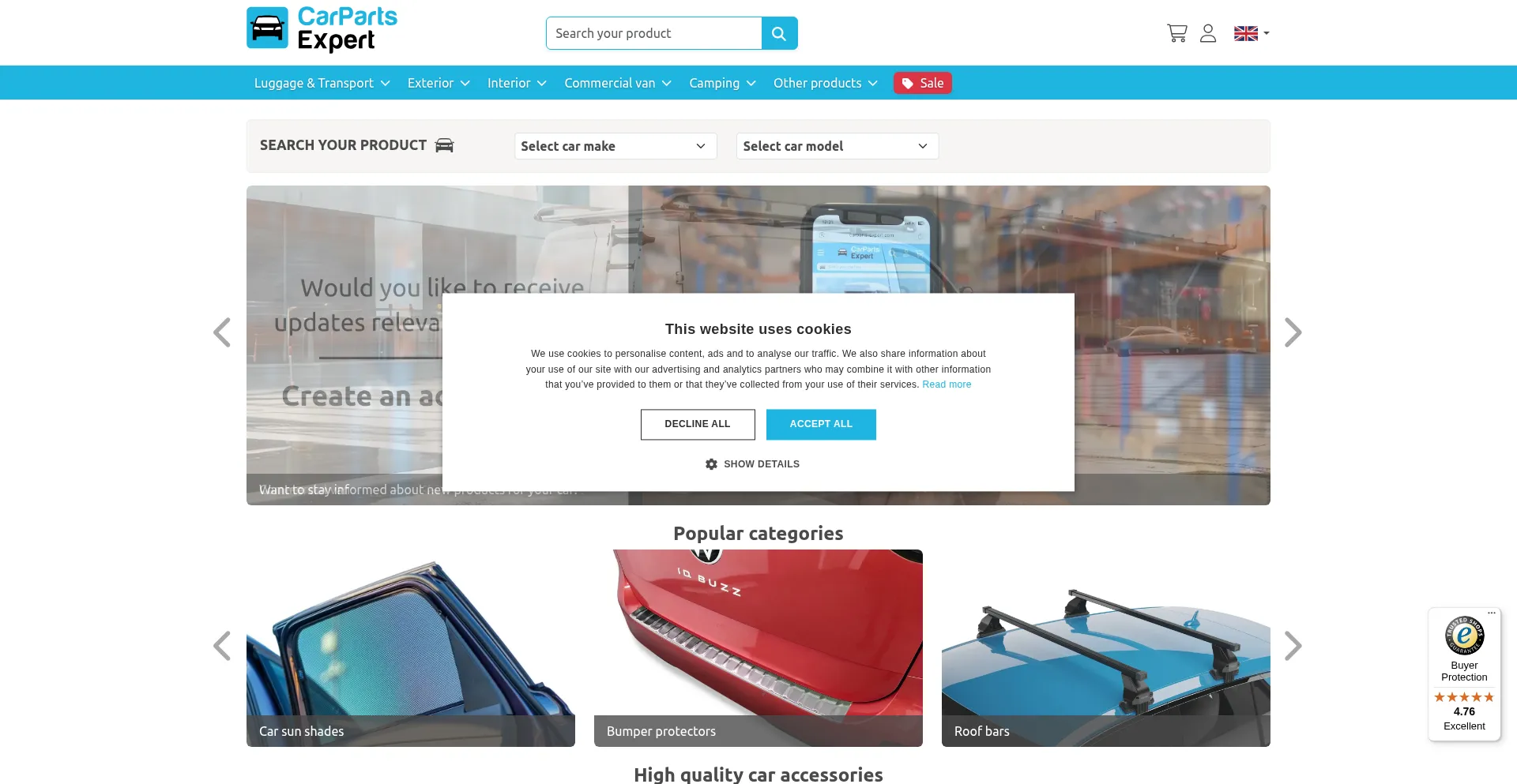 该网站实现符合GDPR或CCPA等隐私法规的cookie同意机制。这表明 carparts-expert.com 遵守数据保护标准并为用户提供对个人数据收集实践的控制。