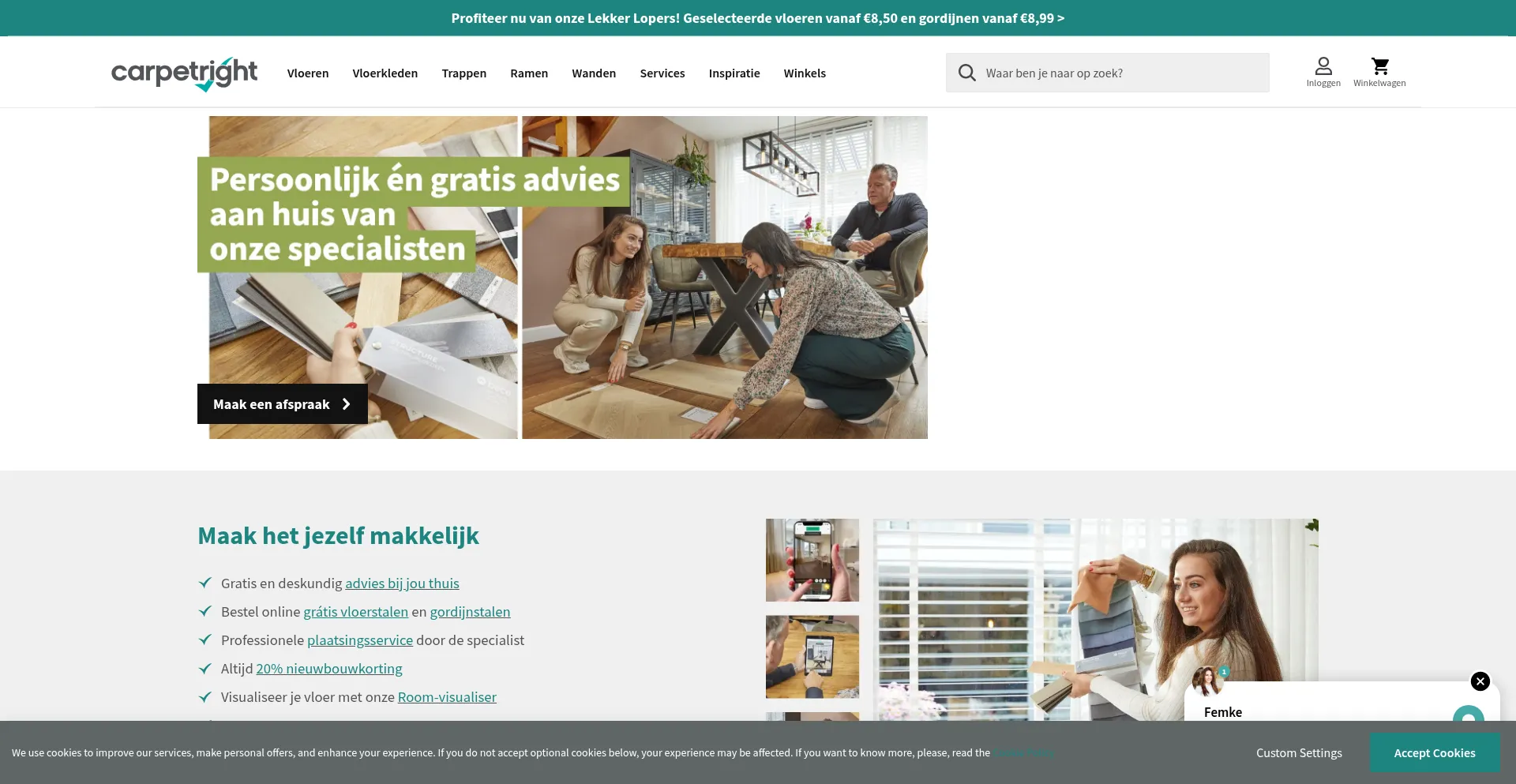 该网站实现符合GDPR或CCPA等隐私法规的cookie同意机制。这表明 carpetright.nl 遵守数据保护标准并为用户提供对个人数据收集实践的控制。