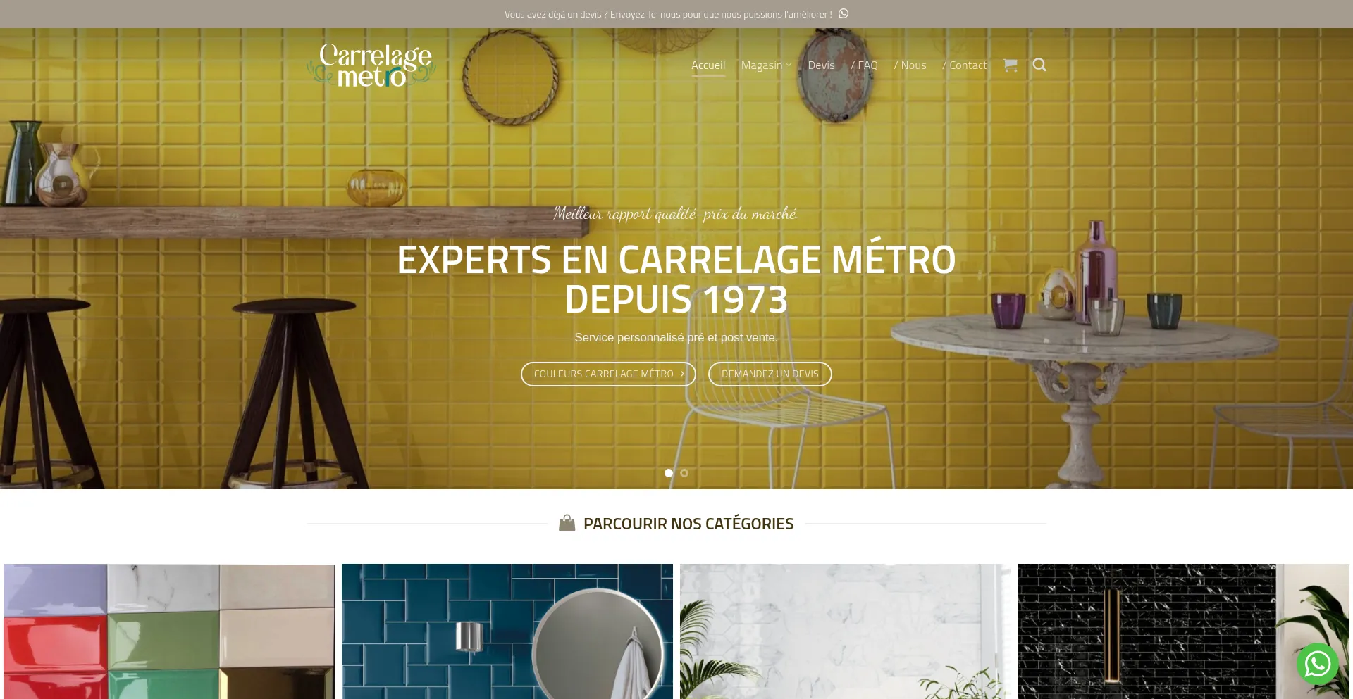 网站上存在社交媒体链接表明 carrelagemetro.fr 在社交媒体上维护官方账户,这是可信度和参与度的积极信号。