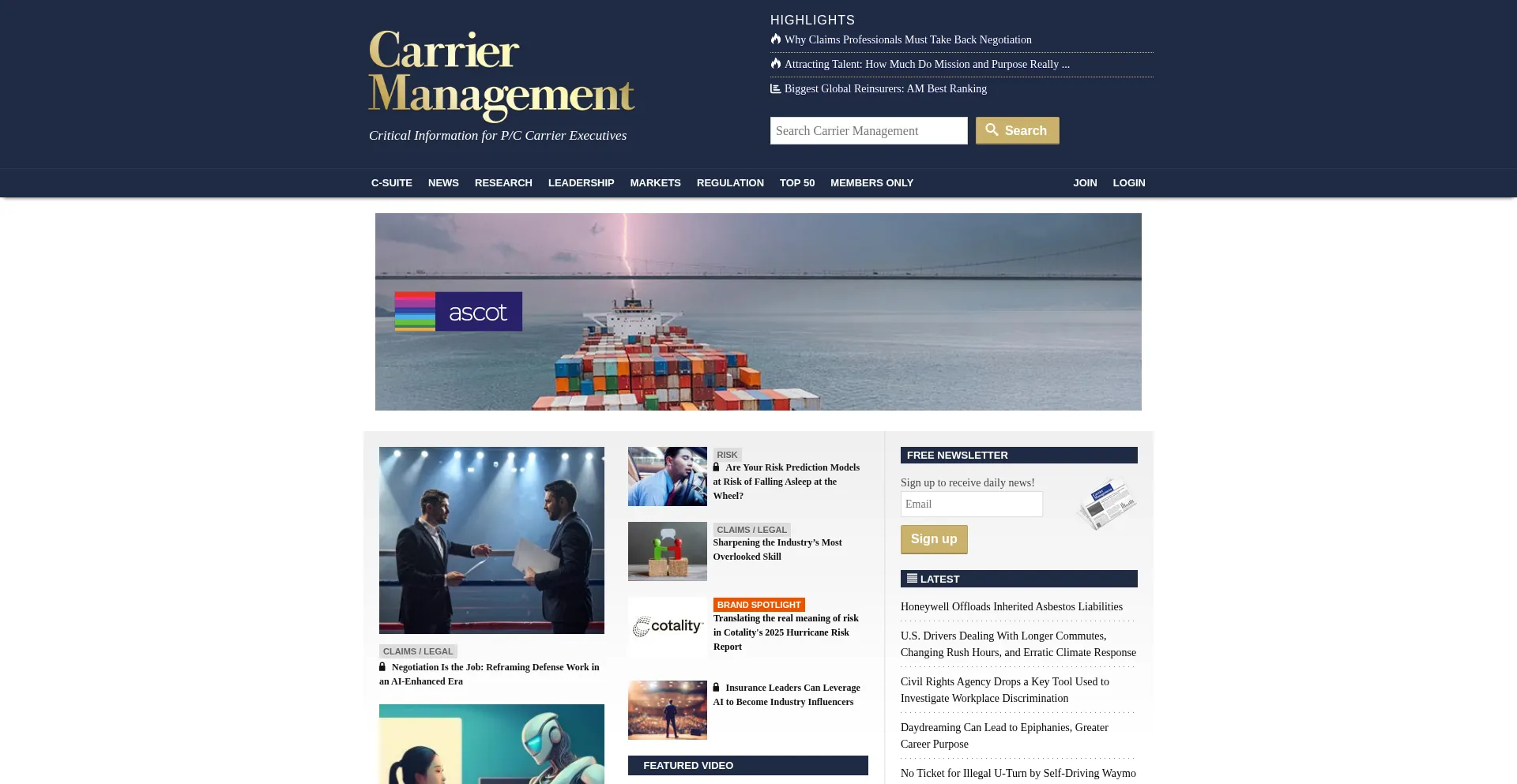 Delivers insight and analysis for property/casualty insurance C-suite officers and boards of directors on leadership, strategy and industry challenges
