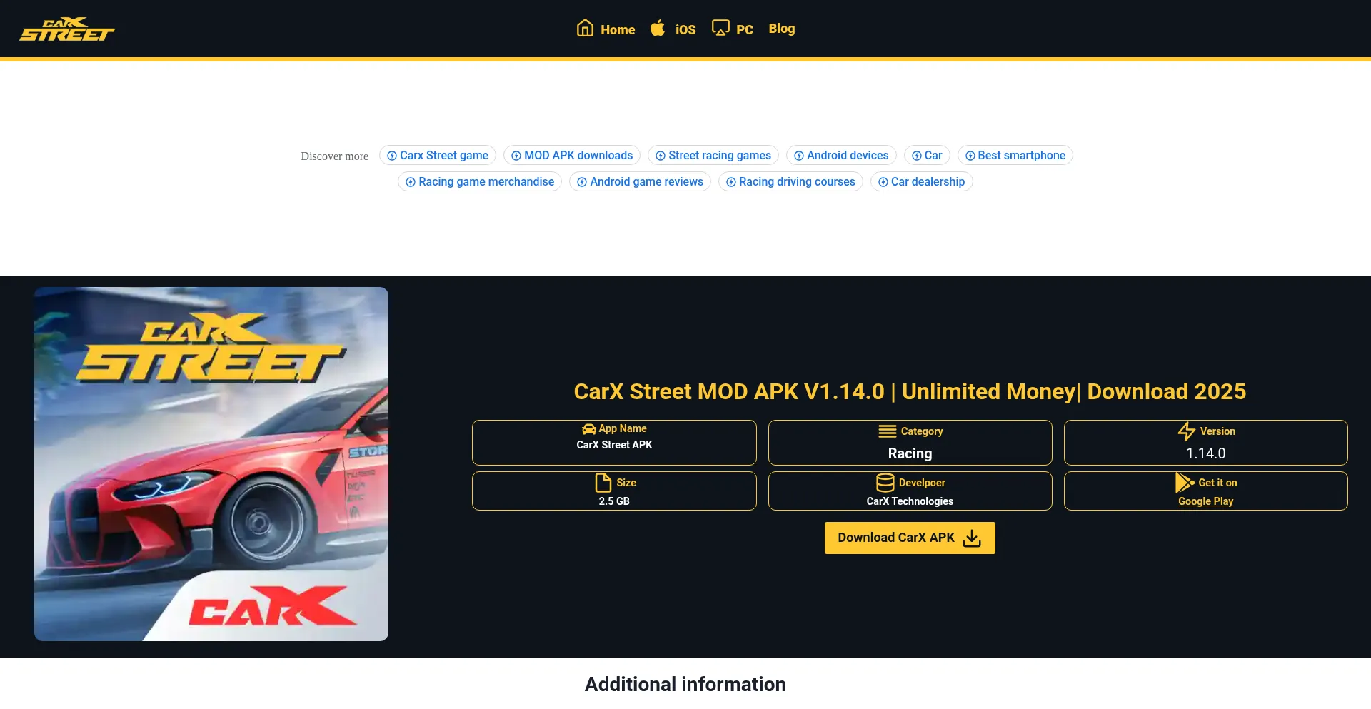 carxstreetsapks.com 提供 Android 设备移动应用程序,表明平台存在已扩展到网络服务之外。