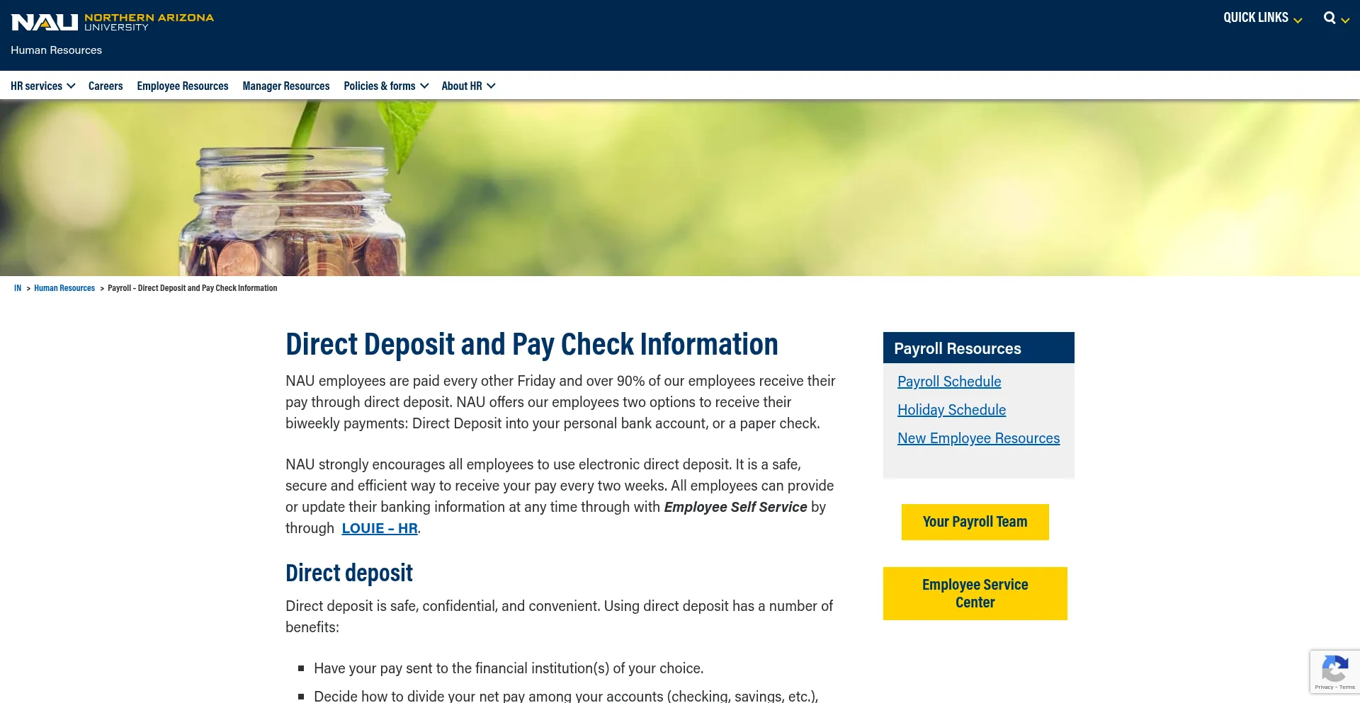 NAU employees are paid every other Friday and over 90% of our employees receive their pay through direct deposit. NAU offers our employees two options to…
