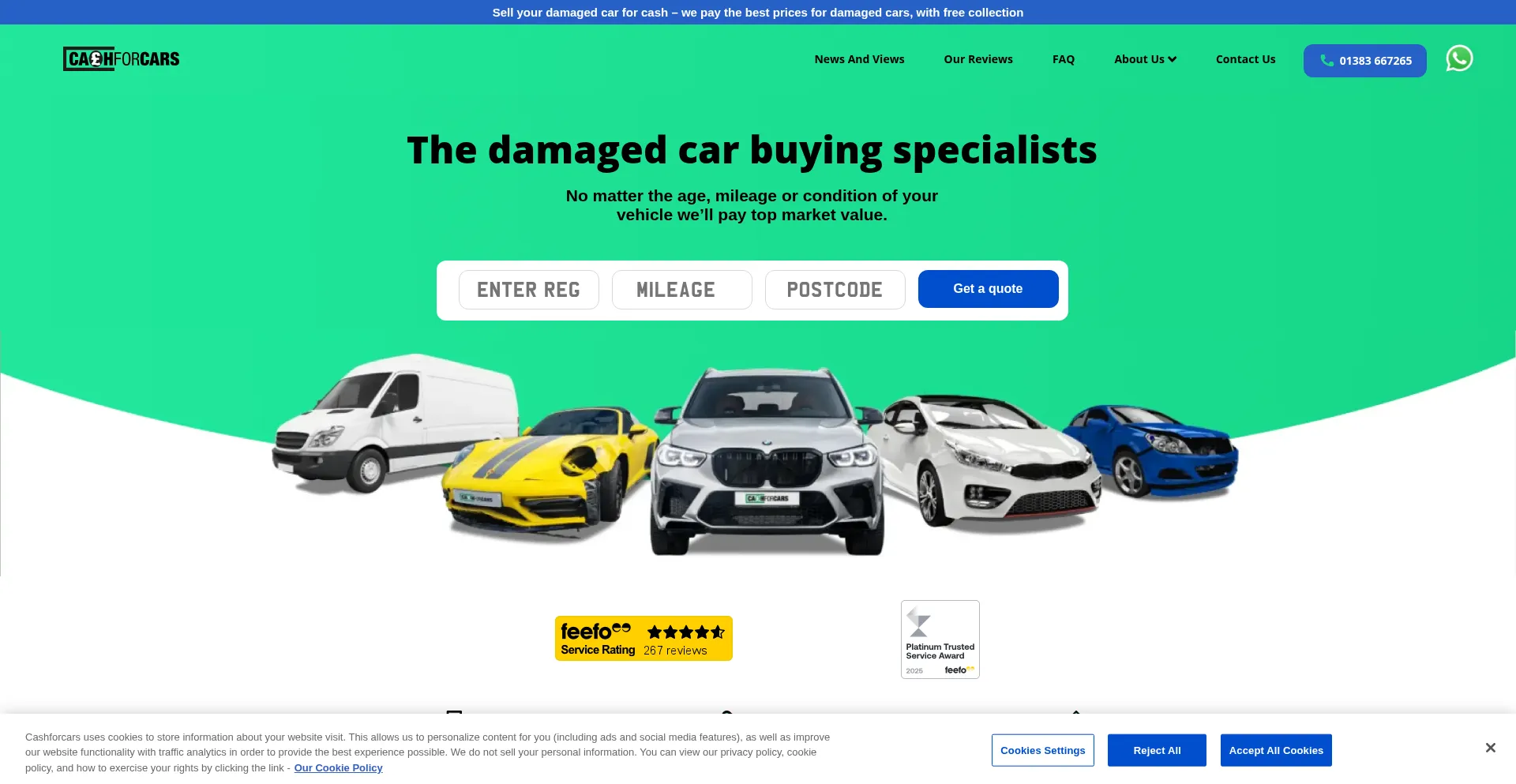 该网站实现符合GDPR或CCPA等隐私法规的cookie同意机制。这表明 cashforcars.co.uk 遵守数据保护标准并为用户提供对个人数据收集实践的控制。