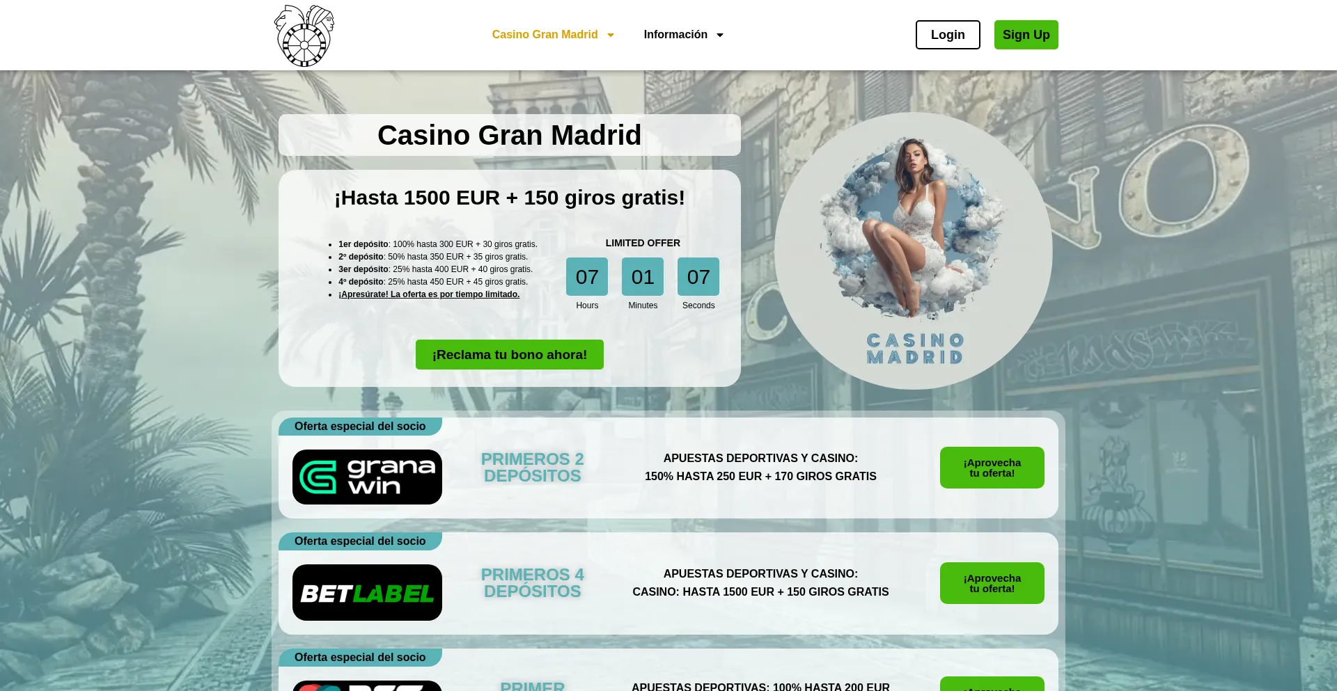 Accede a Casino Gran Madrid con 30€ sin depósito más 200% bono primer ingreso. Juega slots, ruleta en vivo y retira ganancias.