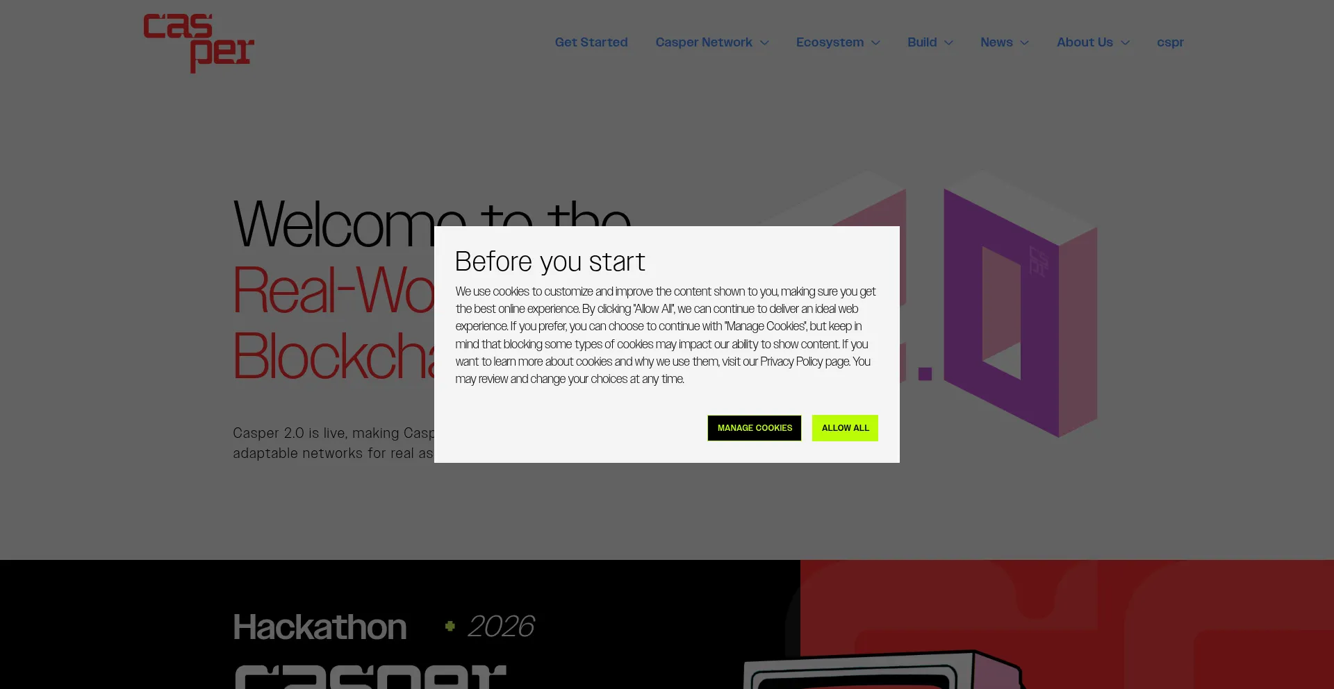该网站实现符合GDPR或CCPA等隐私法规的cookie同意机制。这表明 casper.network 遵守数据保护标准并为用户提供对个人数据收集实践的控制。