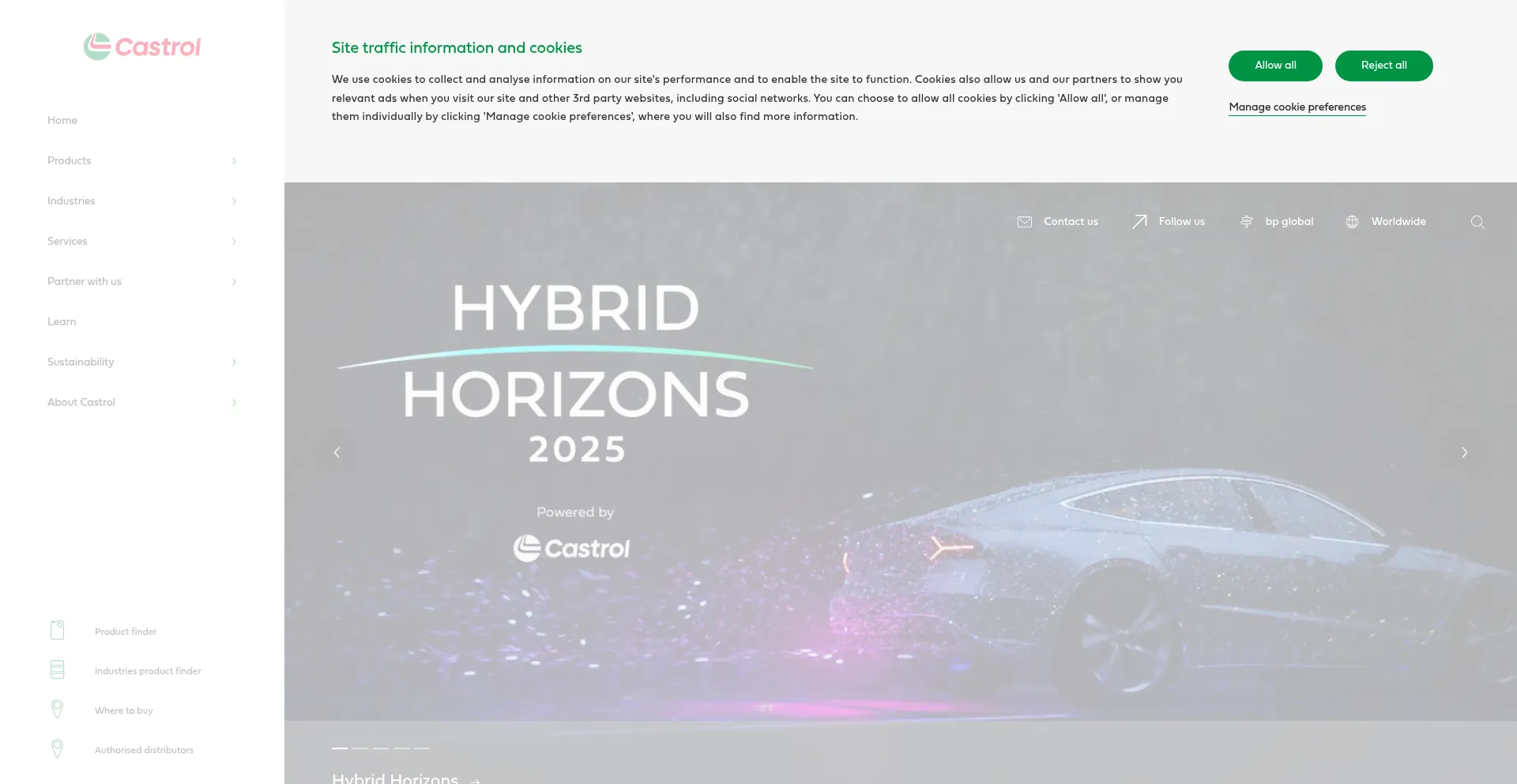 该网站实现符合GDPR或CCPA等隐私法规的cookie同意机制。这表明 castrol.com 遵守数据保护标准并为用户提供对个人数据收集实践的控制。