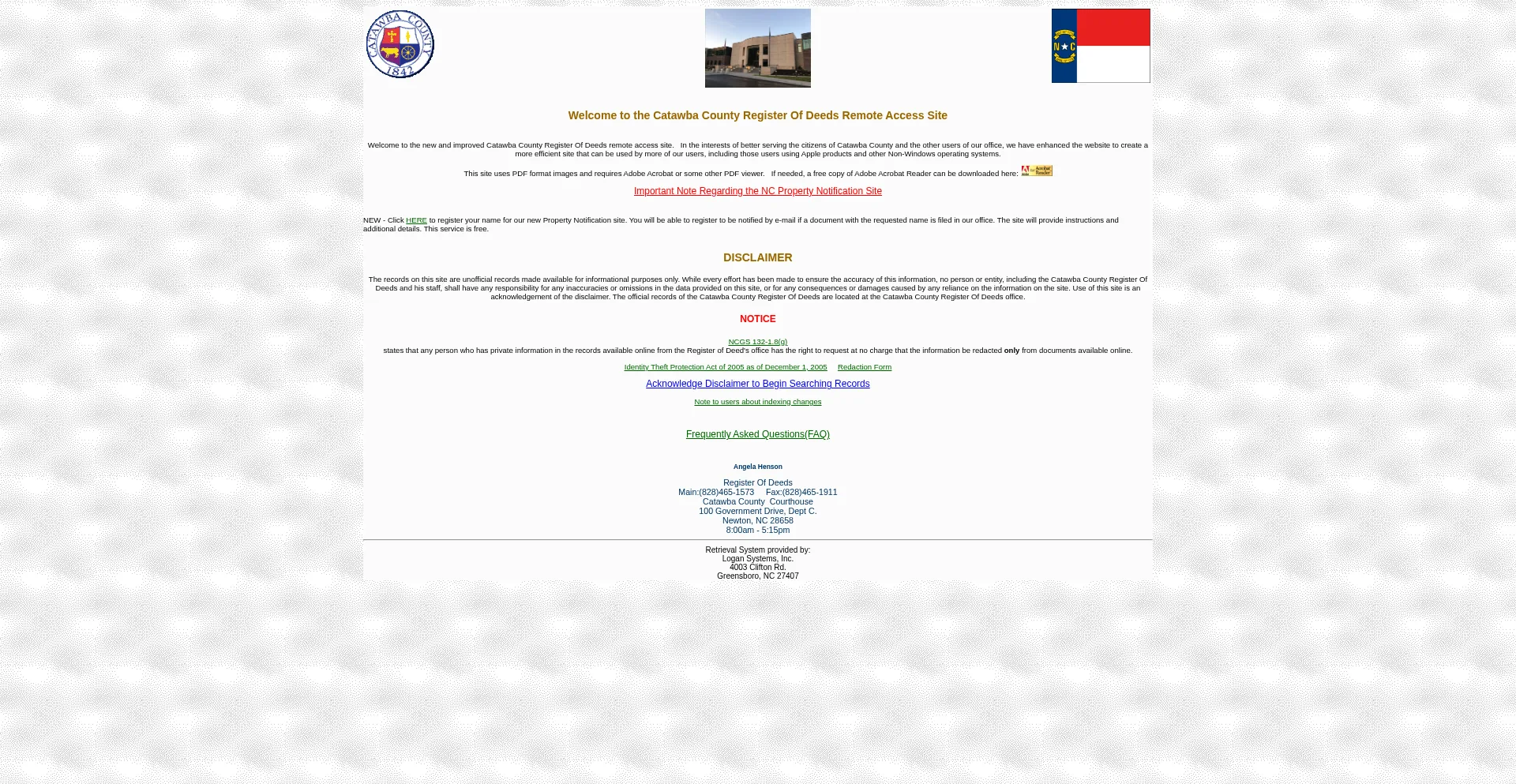 Welcome to the new and improved Catawba County Register Of Deeds remote access site.