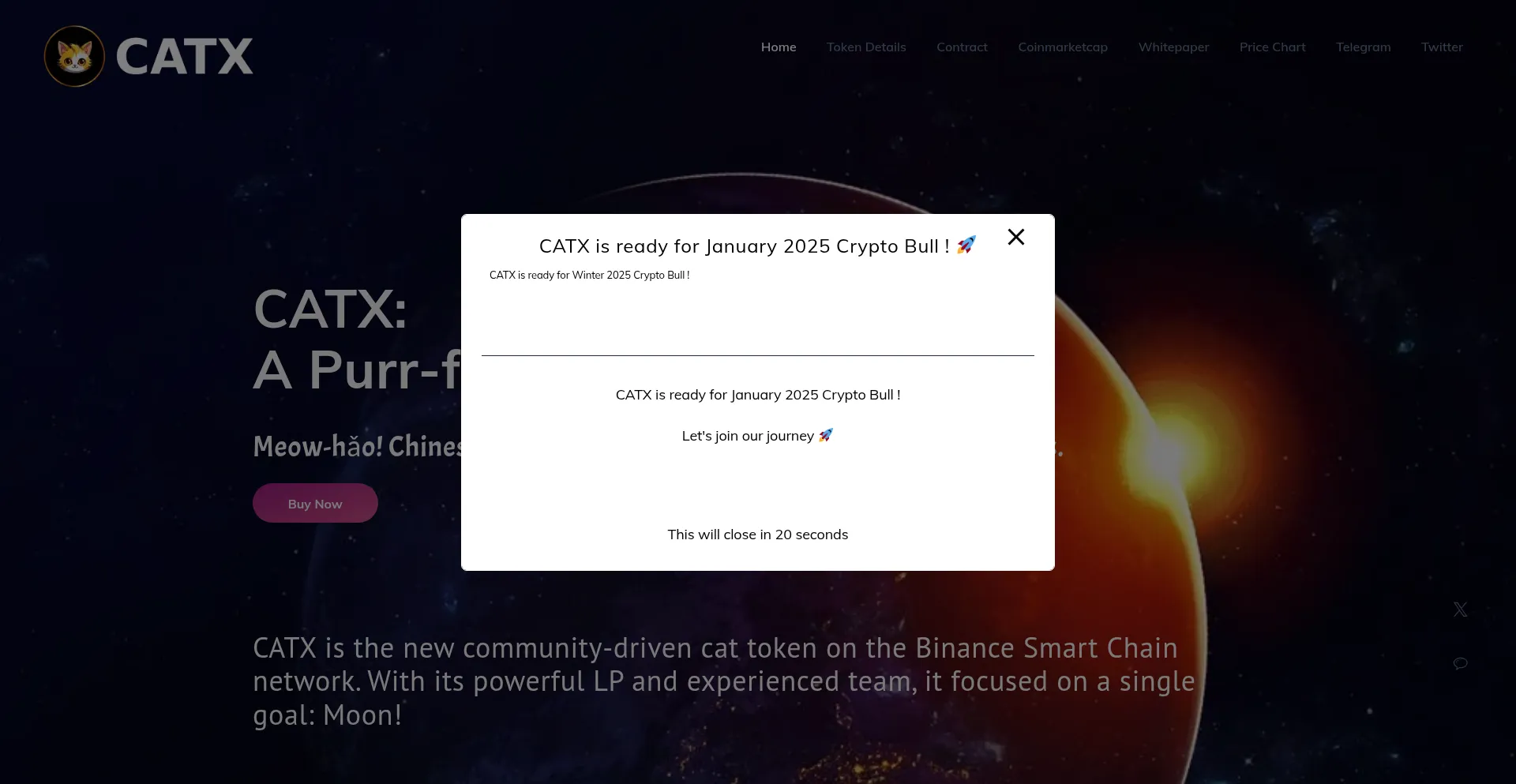该网站实现数据收集表单,请求个人信息,包括姓名、电子邮件地址、电话号码或其他敏感详细信息。用户应验证 catxtoken.com 的合法性并在提交个人数据前查看隐私政策。