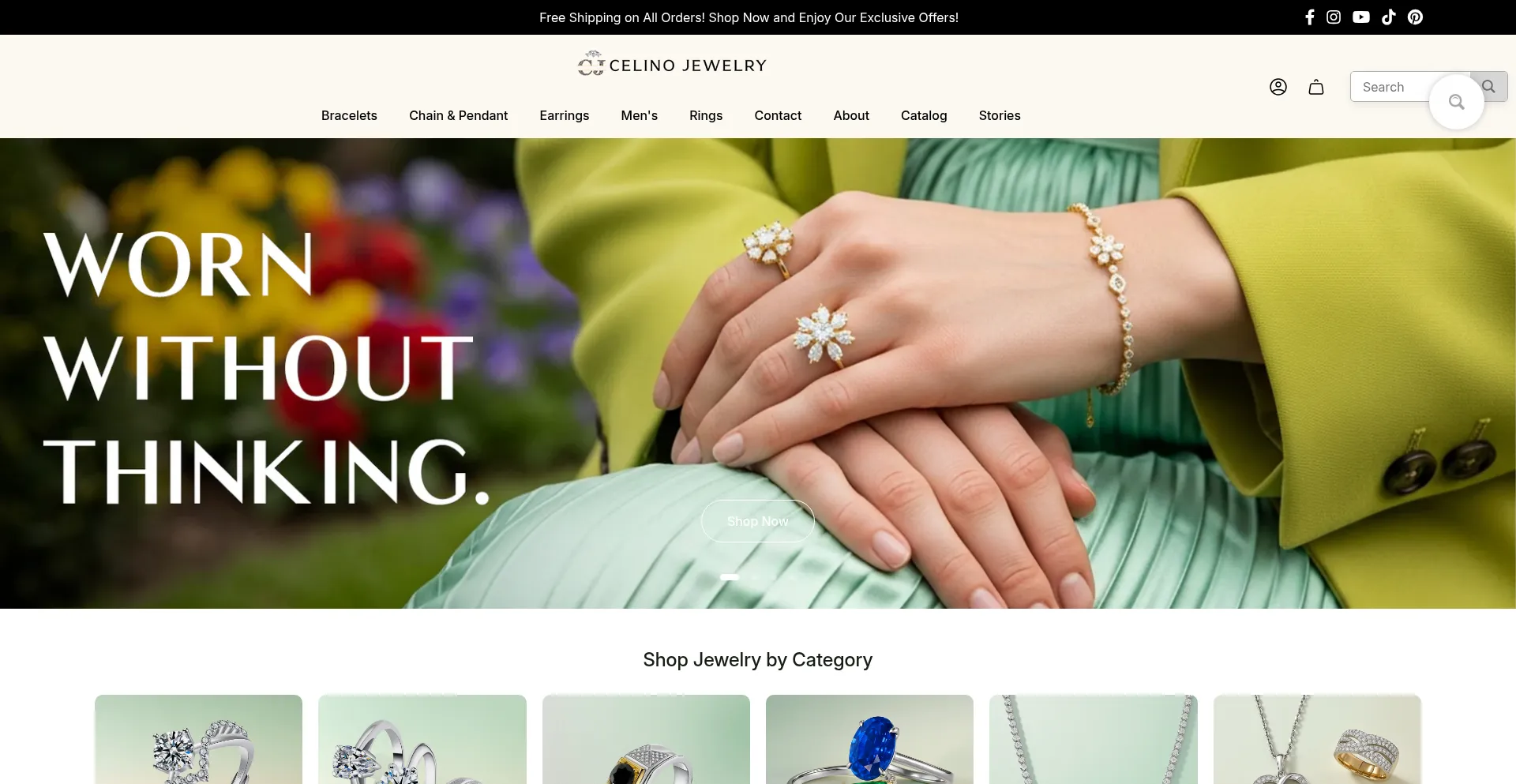 网站上存在社交媒体链接表明 celinojewelry.com 在社交媒体上维护官方账户,这是可信度和参与度的积极信号。