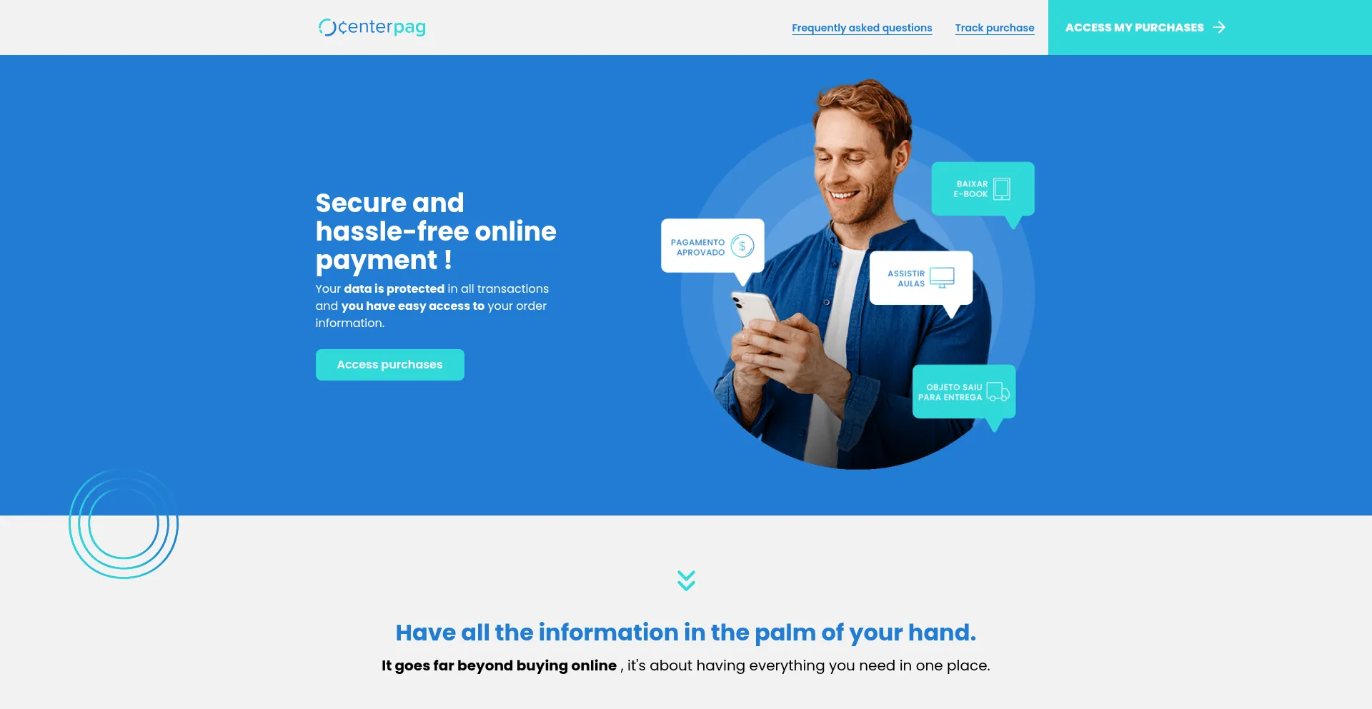 该网站实现数据收集表单,请求个人信息,包括姓名、电子邮件地址、电话号码或其他敏感详细信息。用户应验证 centerpag.com.br 的合法性并在提交个人数据前查看隐私政策。