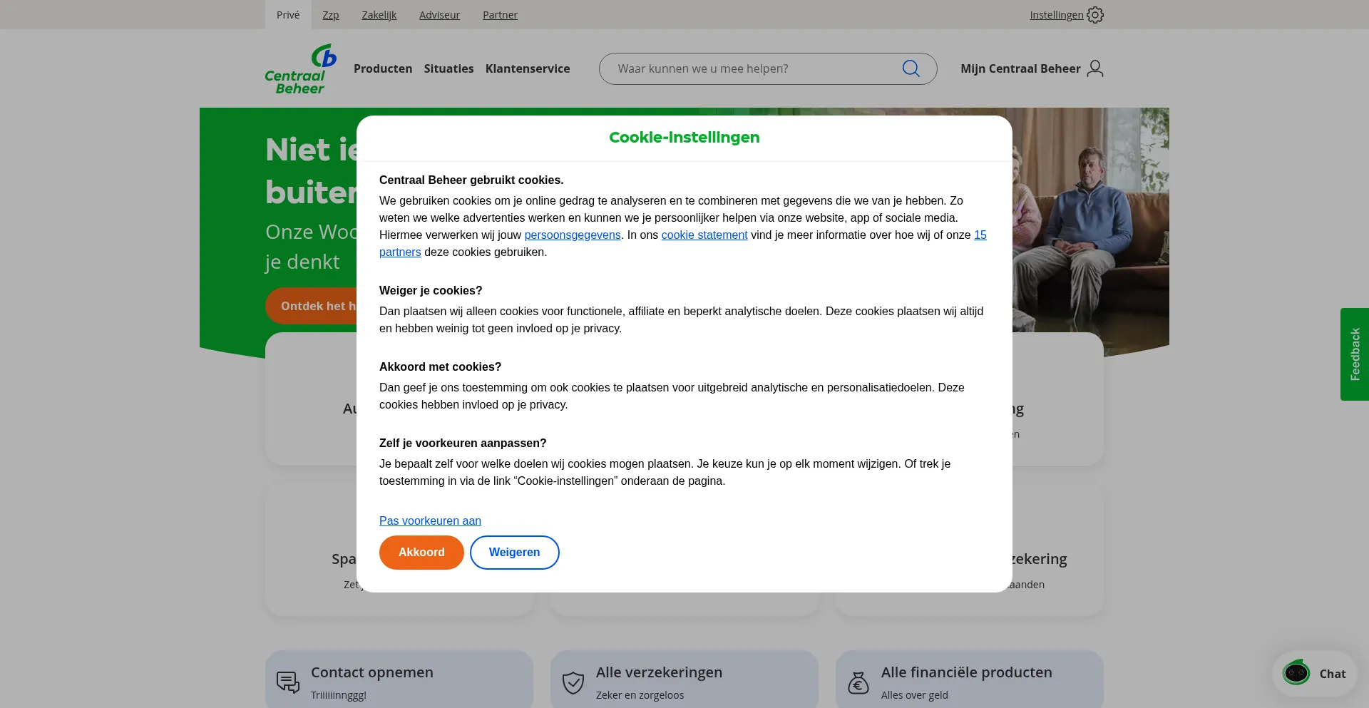 该网站显示来自认可机构的安全认证或信任印章,表明符合安全标准、数据保护协议或行业法规。来自 centraalbeheer.nl 的信任印章表明遵守已建立的安全实践和运营透明度。