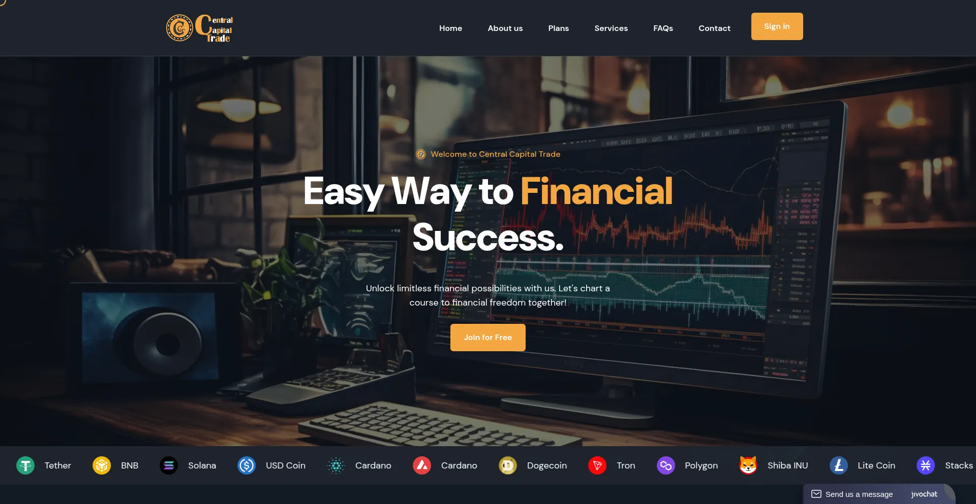 centralcapitaltrade.com 使用 Bootstrap,这是一个广泛采用的开源响应式网页开发框架。Bootstrap 通过标准化组件和样式实现移动友好界面的高效创建。