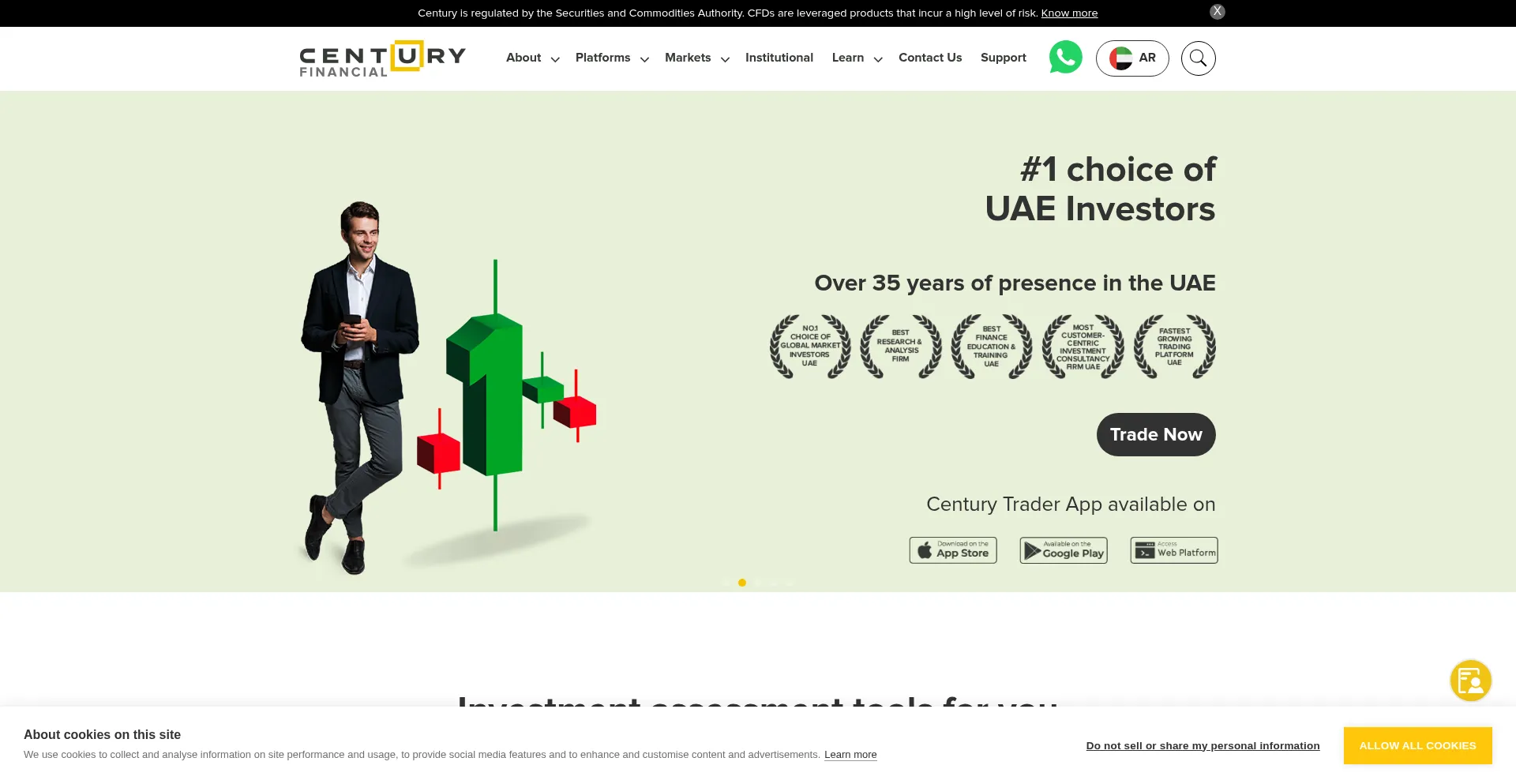 该网站实现符合GDPR或CCPA等隐私法规的cookie同意机制。这表明 century.ae 遵守数据保护标准并为用户提供对个人数据收集实践的控制。