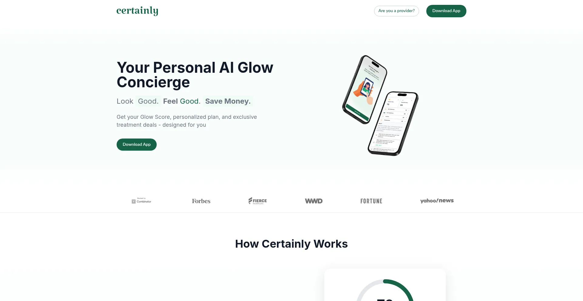 Get your Glow Score, personalized plan, and exclusive treatment deals. Look Good. Feel Good. Save Money.
