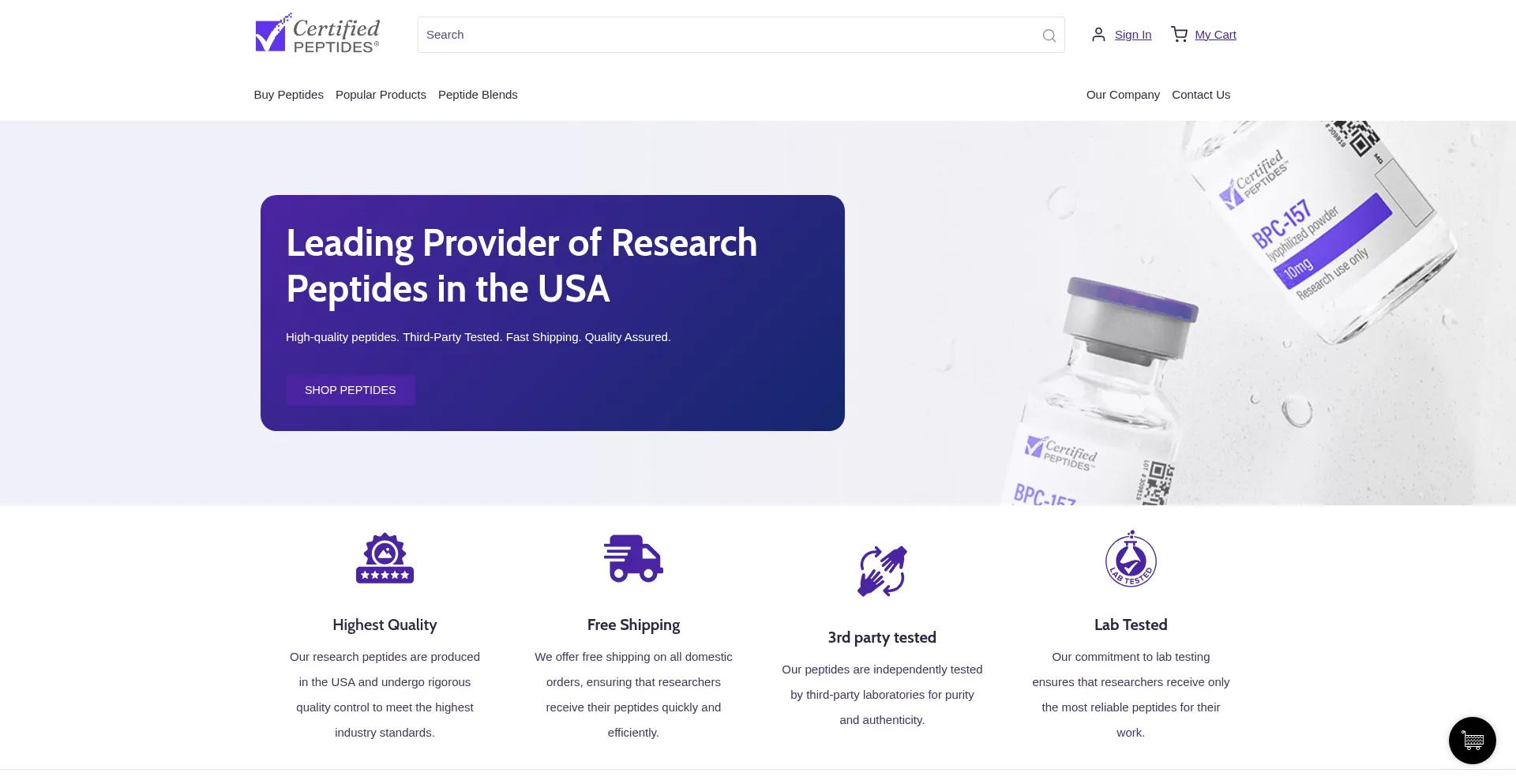 分析表明 certifiedpeptide.com 作为电子商务平台运营,促进商品或服务的在线交易。该网站实现了购物车功能、支付处理系统和产品目录功能,这些是商业零售运营的典型特征。