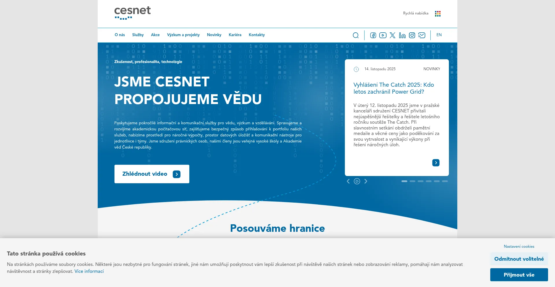 网站上存在社交媒体链接表明 cesnet.cz 在社交媒体上维护官方账户,这是可信度和参与度的积极信号。
