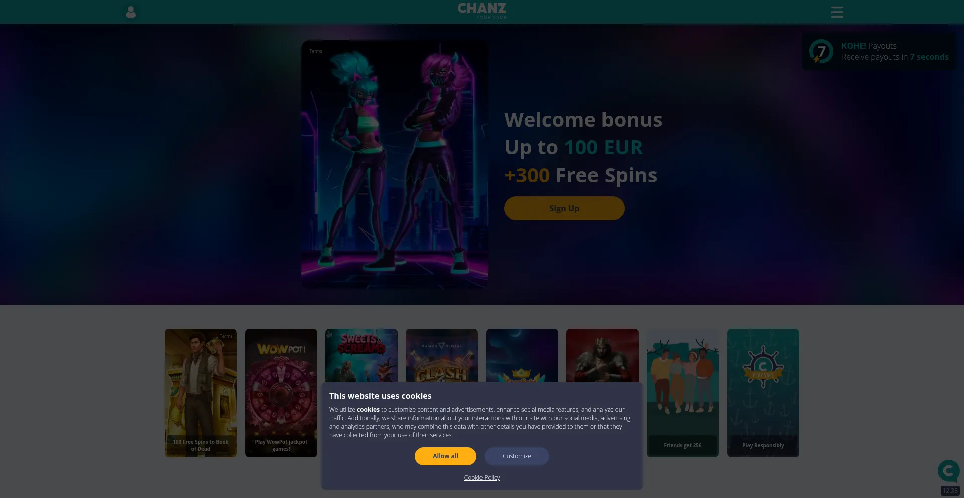 该网站实现符合GDPR或CCPA等隐私法规的cookie同意机制。这表明 chanzcasino.com 遵守数据保护标准并为用户提供对个人数据收集实践的控制。