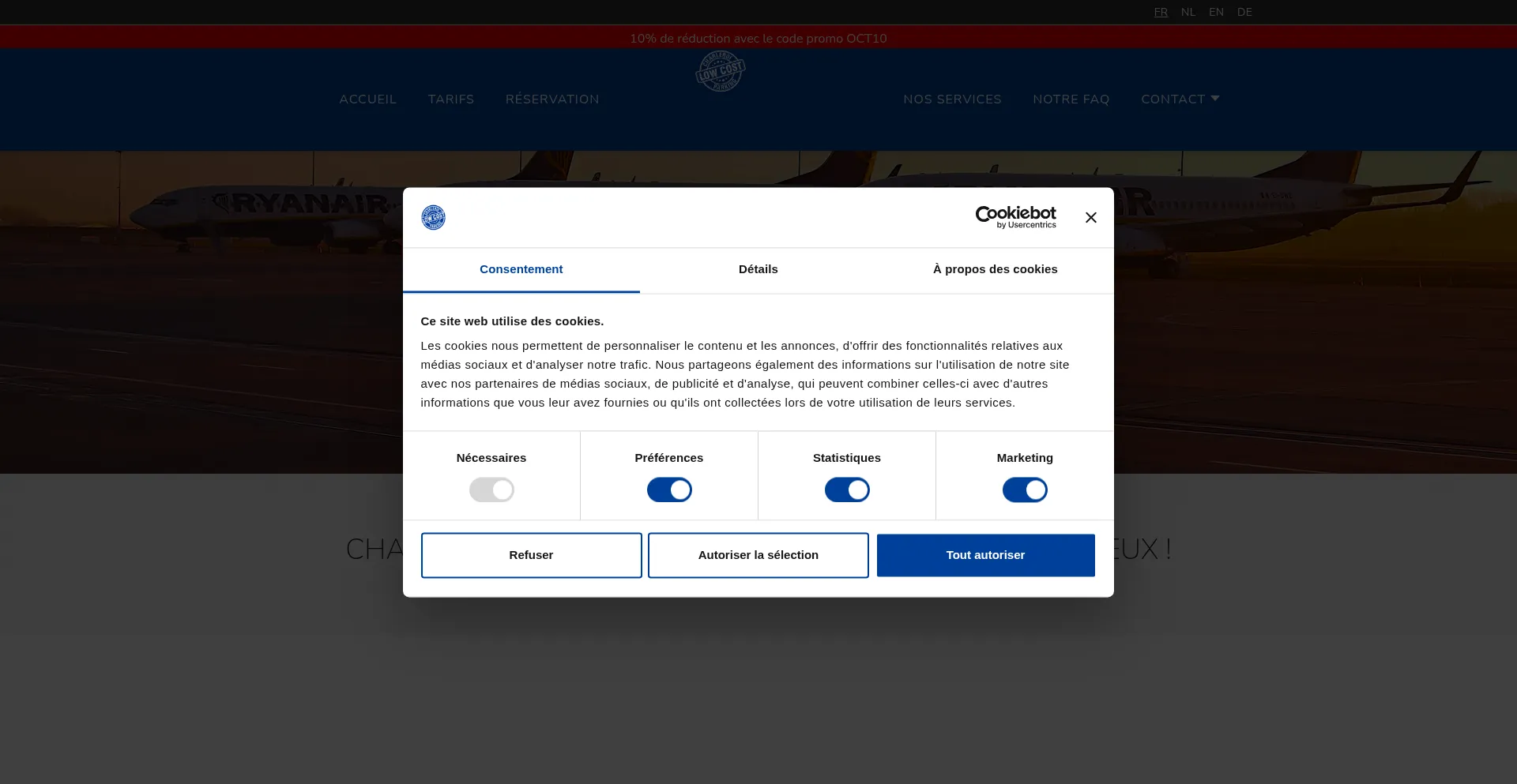 该网站实现符合GDPR或CCPA等隐私法规的cookie同意机制。这表明 charleroilowcost.be 遵守数据保护标准并为用户提供对个人数据收集实践的控制。