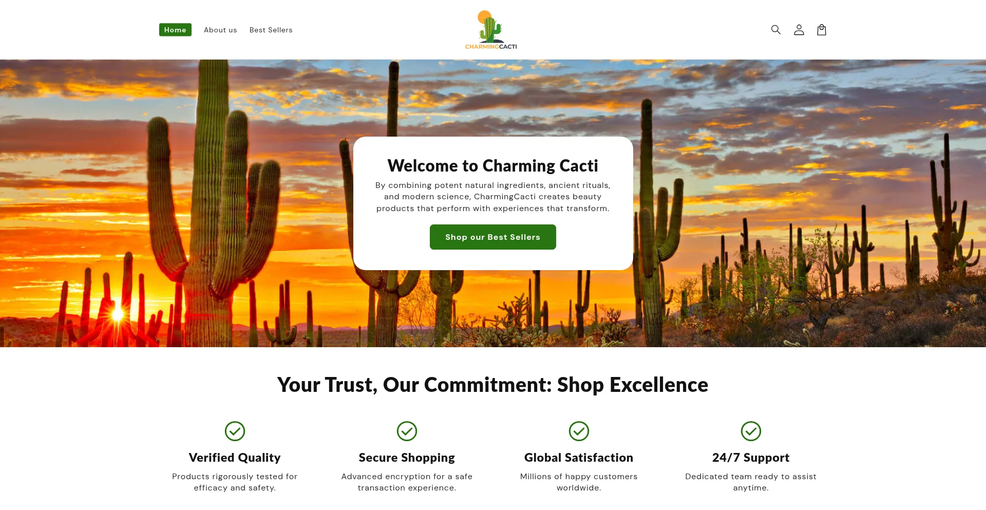 分析表明 charmingcacti.com 作为电子商务平台运营,促进商品或服务的在线交易。该网站实现了购物车功能、支付处理系统和产品目录功能,这些是商业零售运营的典型特征。