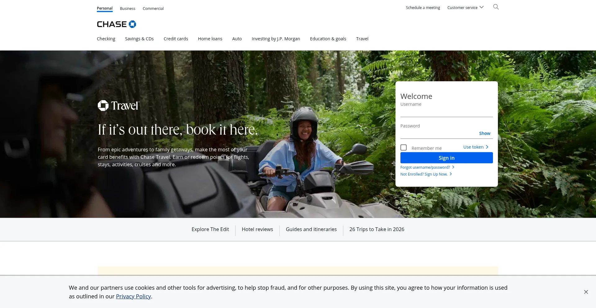 Make the most of your card benefits. Unlock travel offers and rewards on flights, hotels, activities, car rentals and must-do experiences through Chase Travel.
