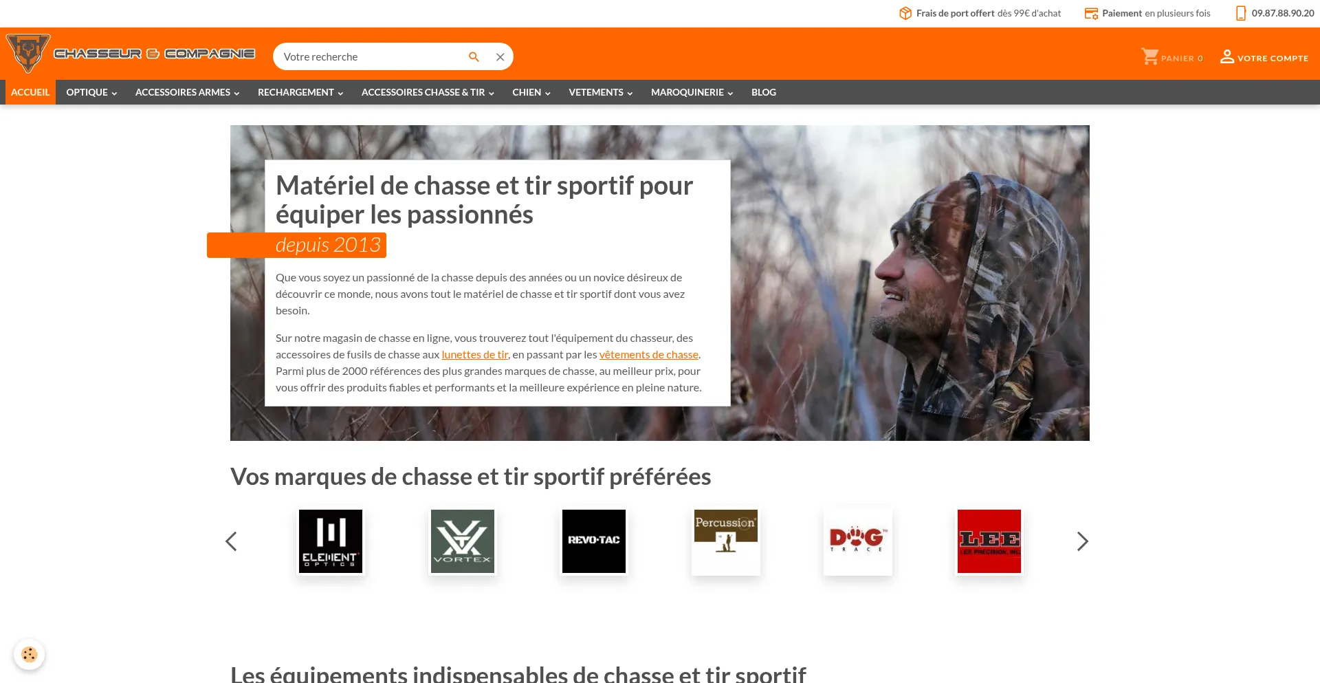 Bienvenue chez chasseur et compagnie, site d'équipement chasse et tir aux meilleurs prix, les grandes marques, Element Optics, Browning, Verney-carron, Vortex Optics, Vector Op...