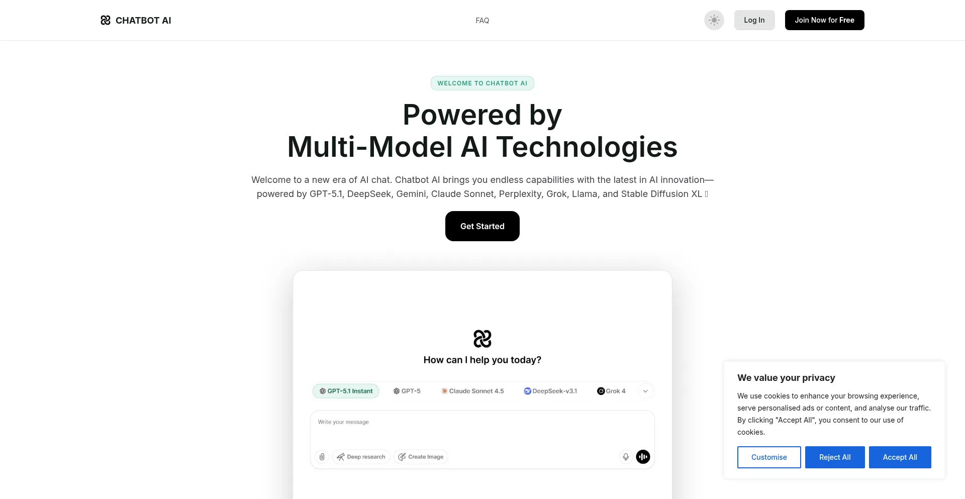 该网站实现符合GDPR或CCPA等隐私法规的cookie同意机制。这表明 chatbotai.co 遵守数据保护标准并为用户提供对个人数据收集实践的控制。