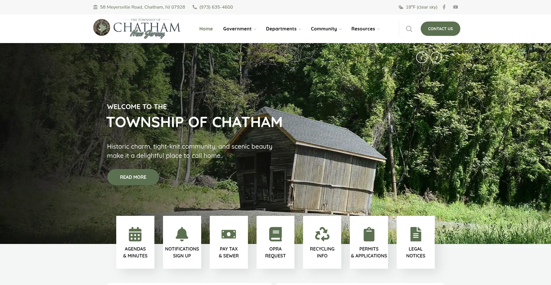 网站上存在社交媒体链接表明 chathamtownship.org 在社交媒体上维护官方账户,这是可信度和参与度的积极信号。