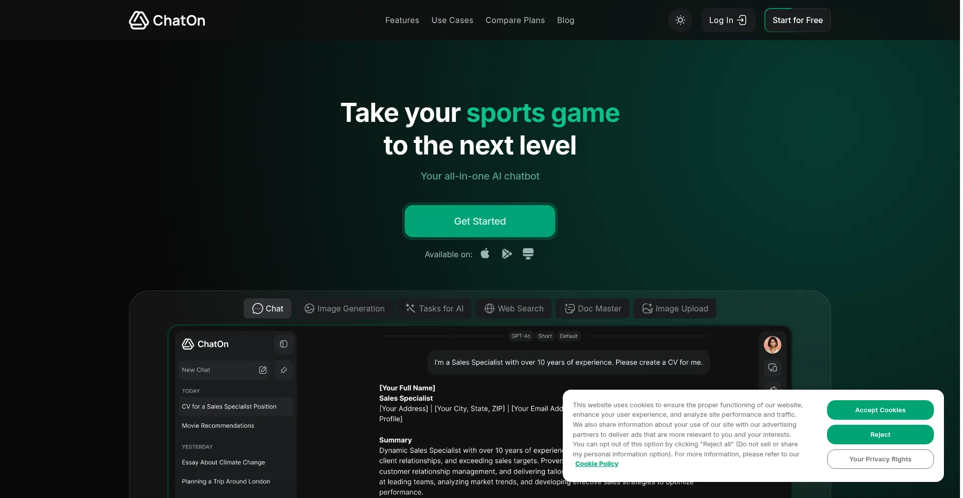 chaton.ai 拥有可用的 iOS 移动应用程序,表明为 Apple 设备用户提供跨平台可访问性。