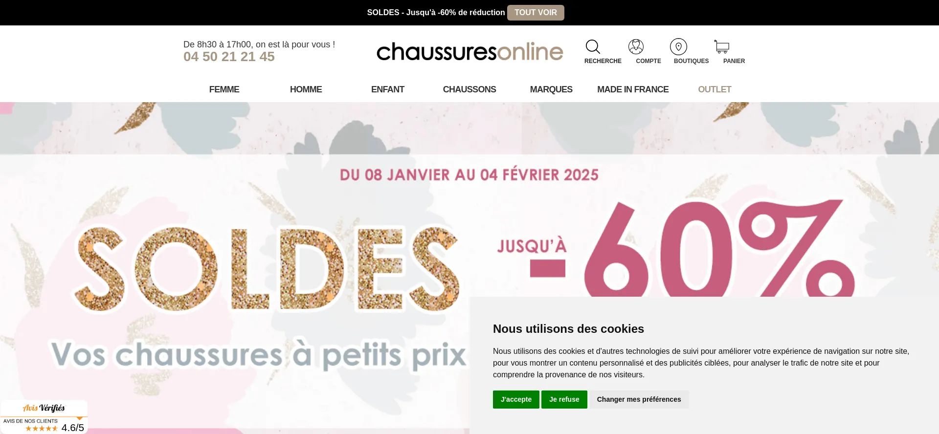 该网站实现符合GDPR或CCPA等隐私法规的cookie同意机制。这表明 chaussuresonline.com 遵守数据保护标准并为用户提供对个人数据收集实践的控制。
