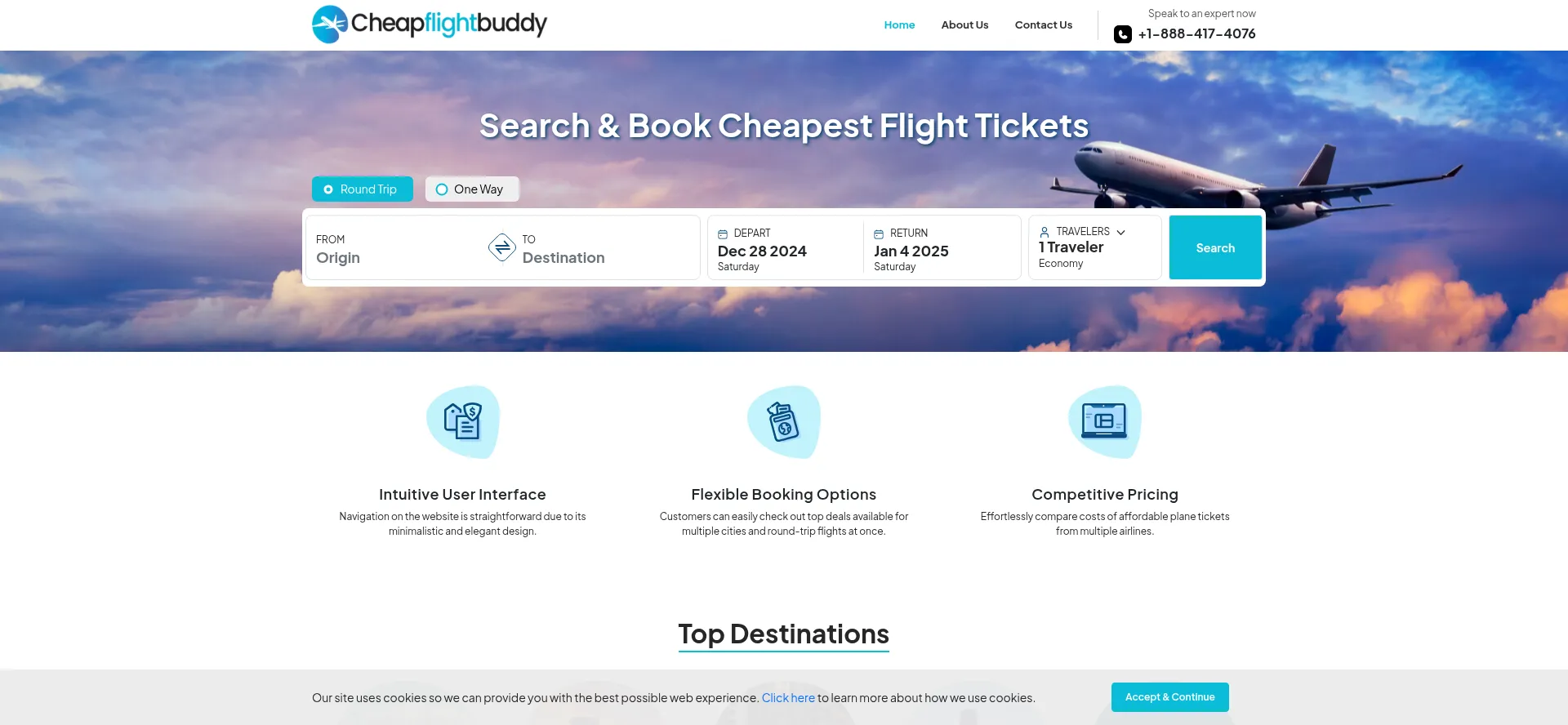 该网站实现符合GDPR或CCPA等隐私法规的cookie同意机制。这表明 cheapflightbuddy.com 遵守数据保护标准并为用户提供对个人数据收集实践的控制。
