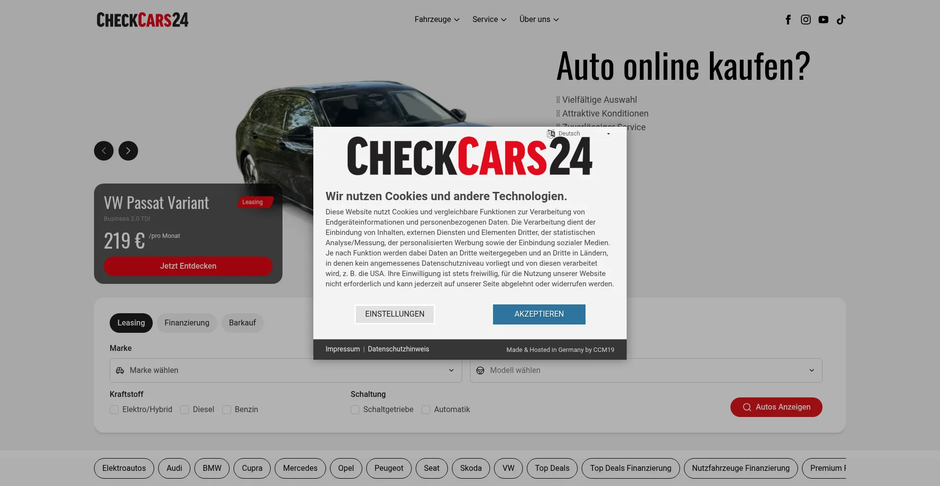 Einfach online zum neuen Auto bei CheckCars24 ✓Zuverlässiger Service ✓Attraktive Konditionen ✓Vielfältige Auswahl
