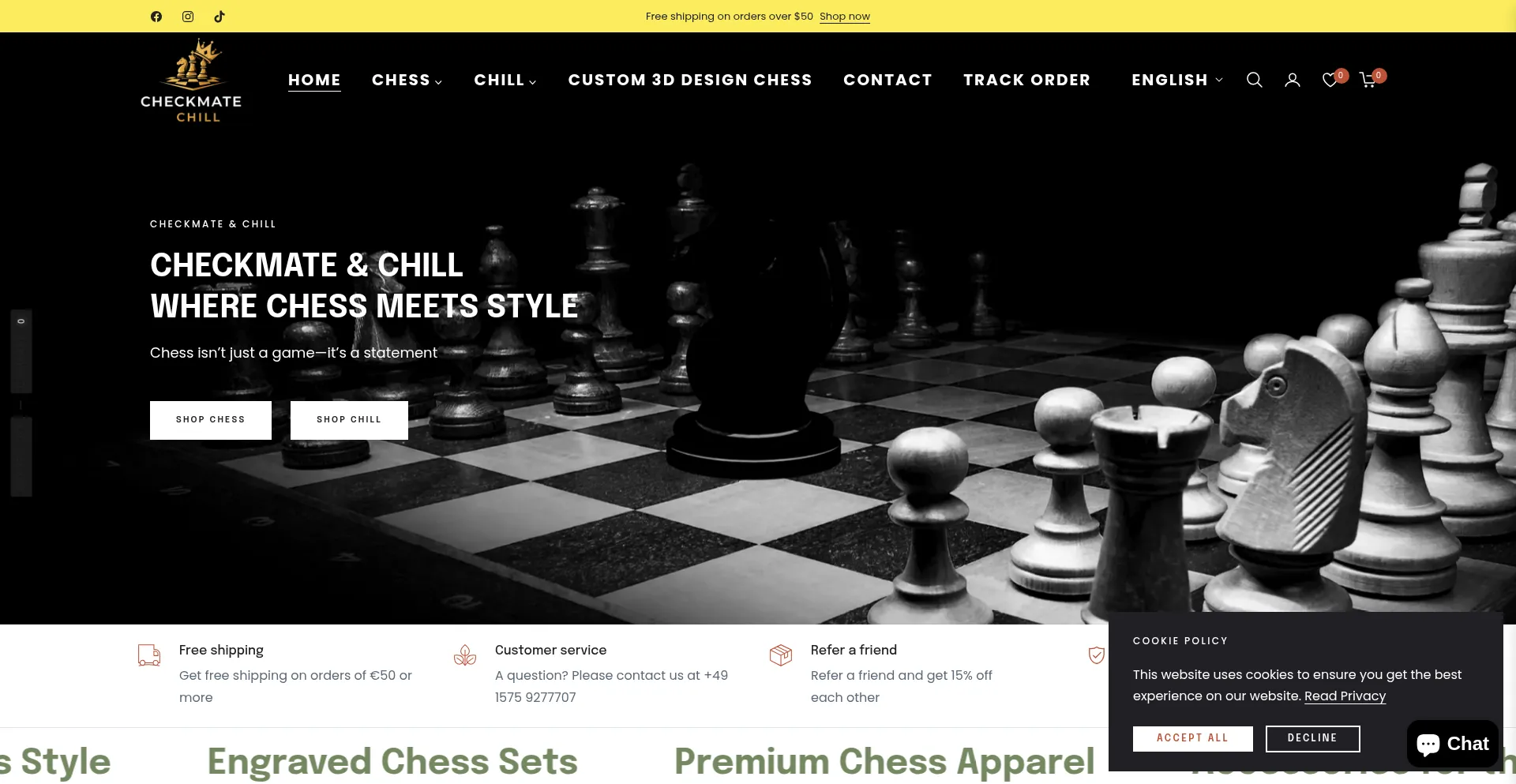 Discover handcrafted wooden chess sets, luxury pieces, and timeless designs at Checkmate & Chill. German-quality craftsmanship for every chess lover. Fast shipping & elegant pac...