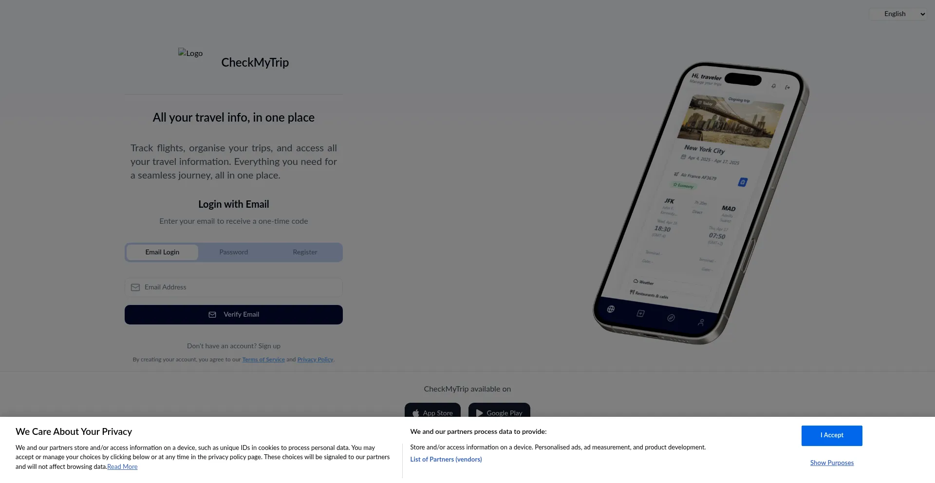 该网站实现符合GDPR或CCPA等隐私法规的cookie同意机制。这表明 checkmytrip.app.link 遵守数据保护标准并为用户提供对个人数据收集实践的控制。