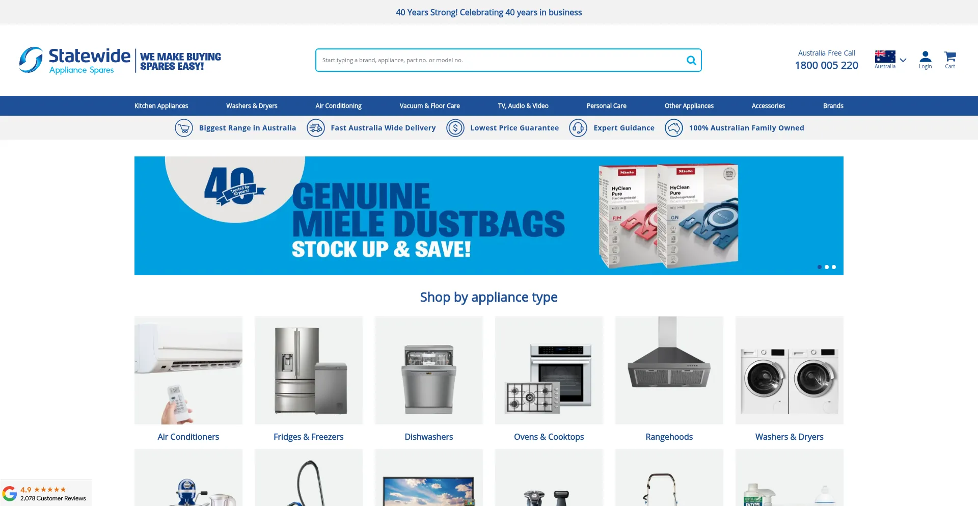 Appliance spare parts with fast Australia wide delivery. Search by brand, appliance or model no. Genuine parts, big brands & lowest prices. Buy online now.