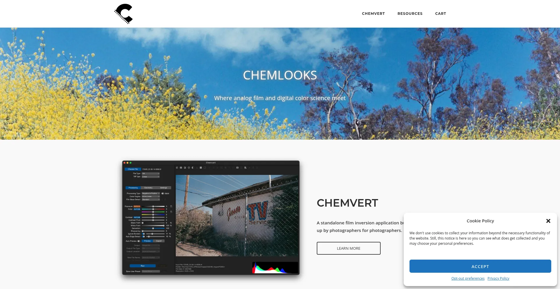 Check out our inversion software for analog film scans, LUTs for cinema cameras, motion picture film for sale, and other film developing resources.