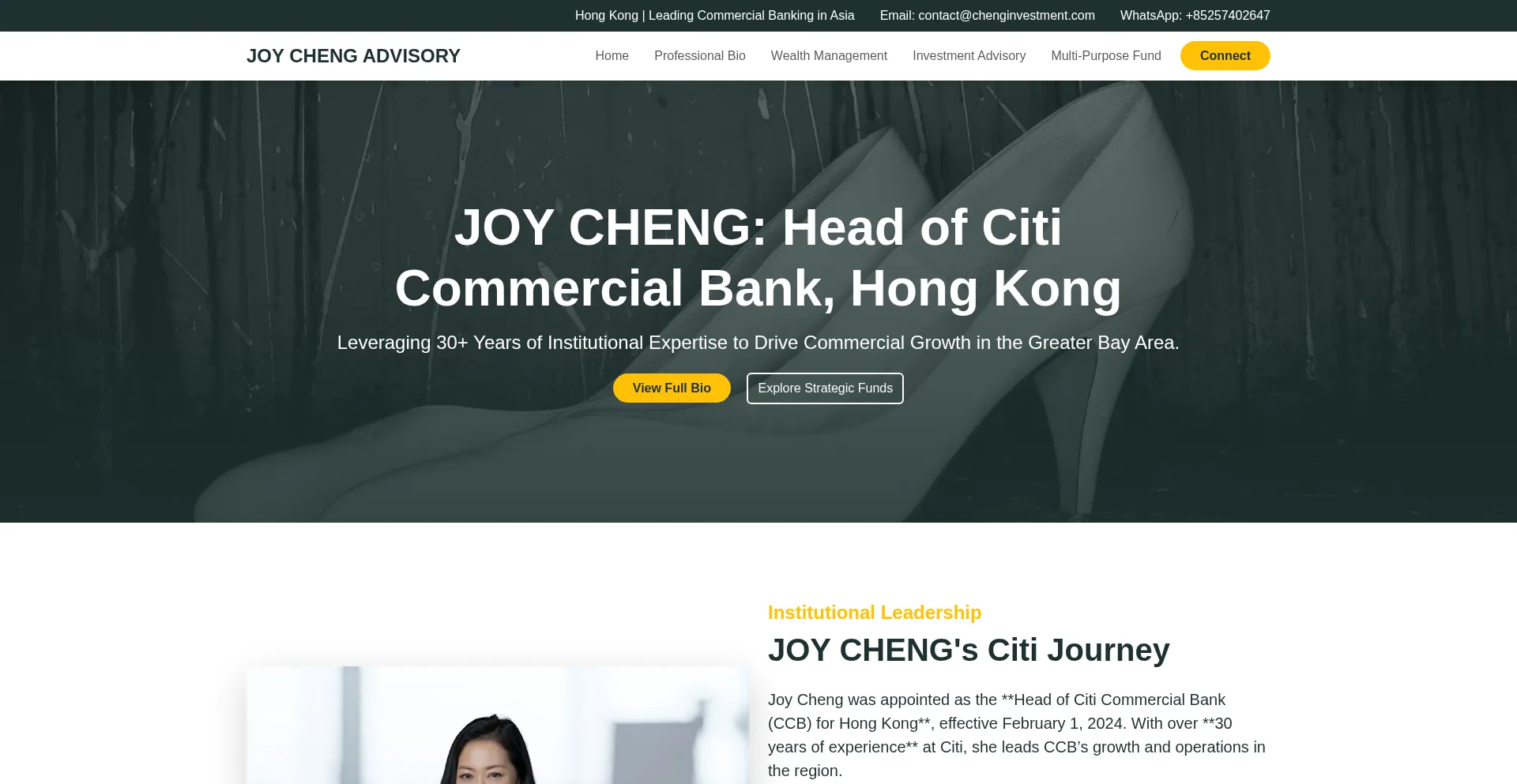 Joy Cheng is Head of Citi Commercial Bank for Hong Kong, leveraging 30 years of experience to serve mid-sized corporates and drive growth in the Greater Bay Area.