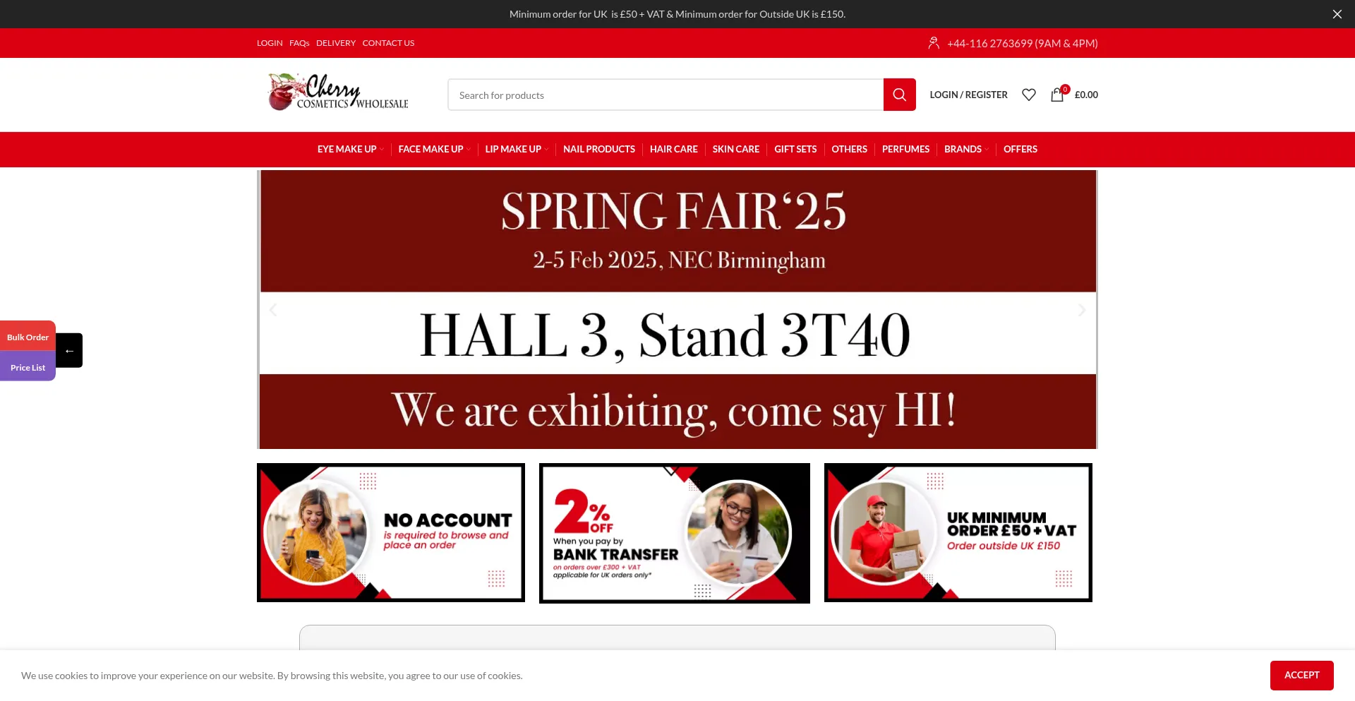 Wholesale cosmetics supplier in the UK, Minimum order £50 + VAT, fast delivery and competitve prices on Loreal, Maybelline, Clarins and more