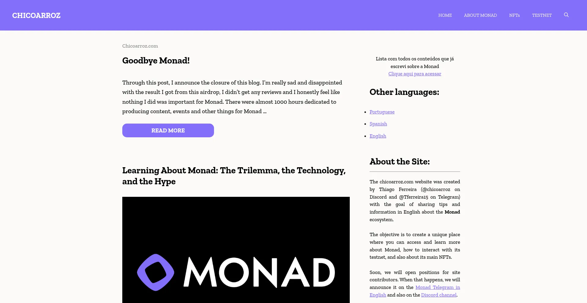 CHICOARROZ - Site do usuário @chicoarroz dedicado a produzir conteúdos sobre a Monad
