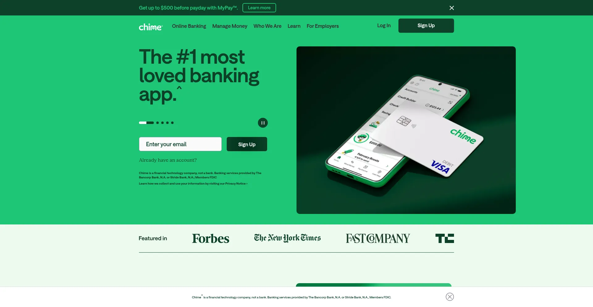 chime.com 提供 Android 设备移动应用程序,表明平台存在已扩展到网络服务之外。