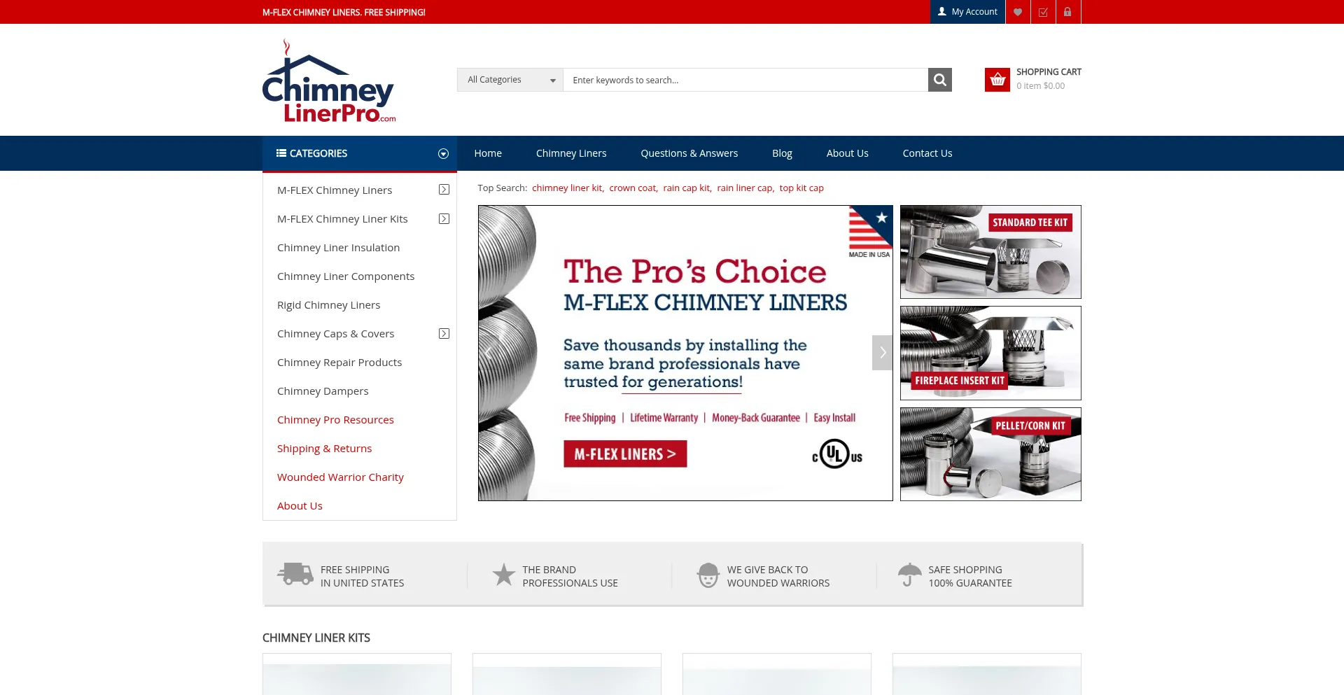Chimney Liner for Sale! Free Shipping on all products - stainless steel chimney liner kit, multi flue chimney cap, chase cover and aluminum chimney liner.