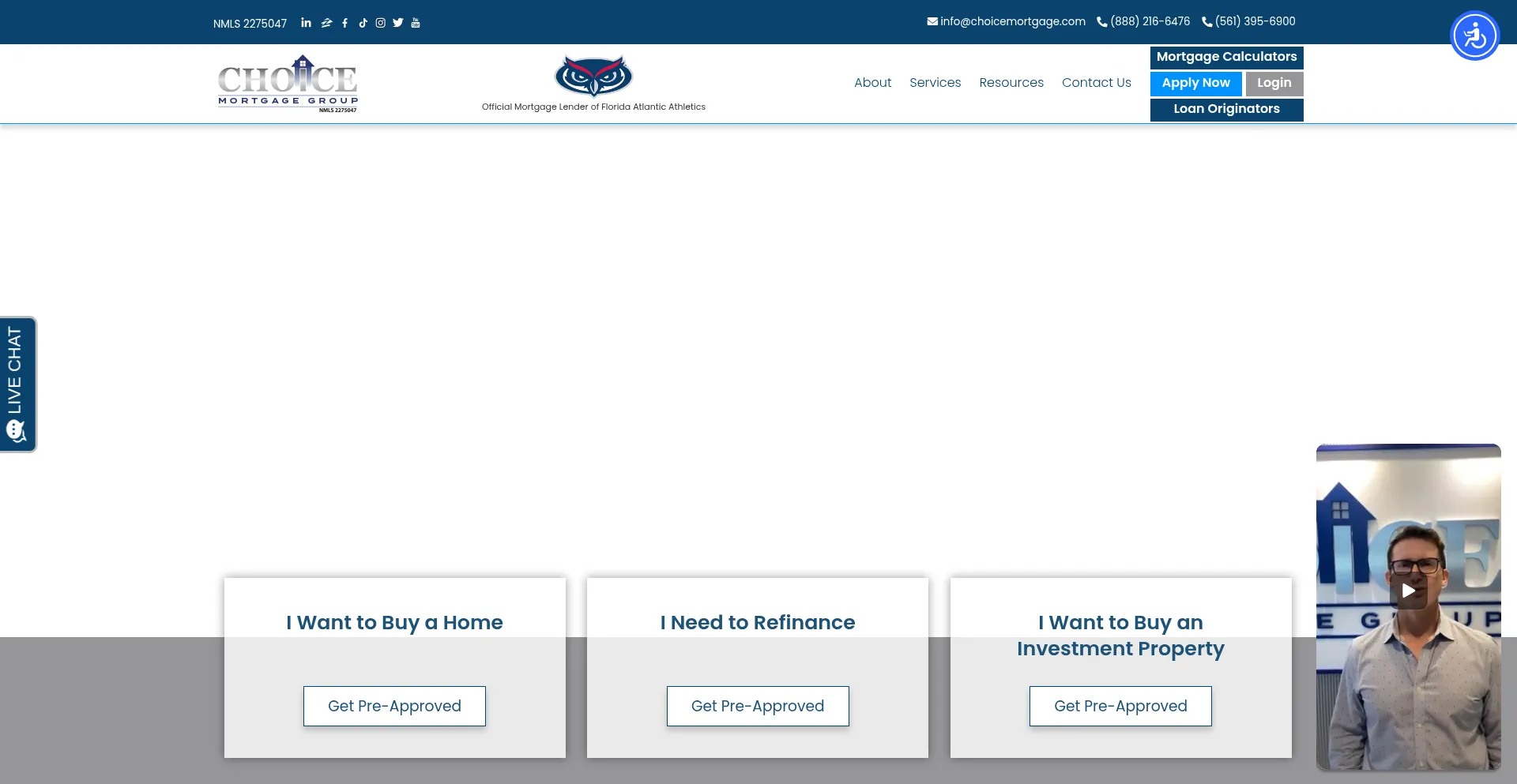 网站上存在社交媒体链接表明 choicemortgage.com 在社交媒体上维护官方账户,这是可信度和参与度的积极信号。