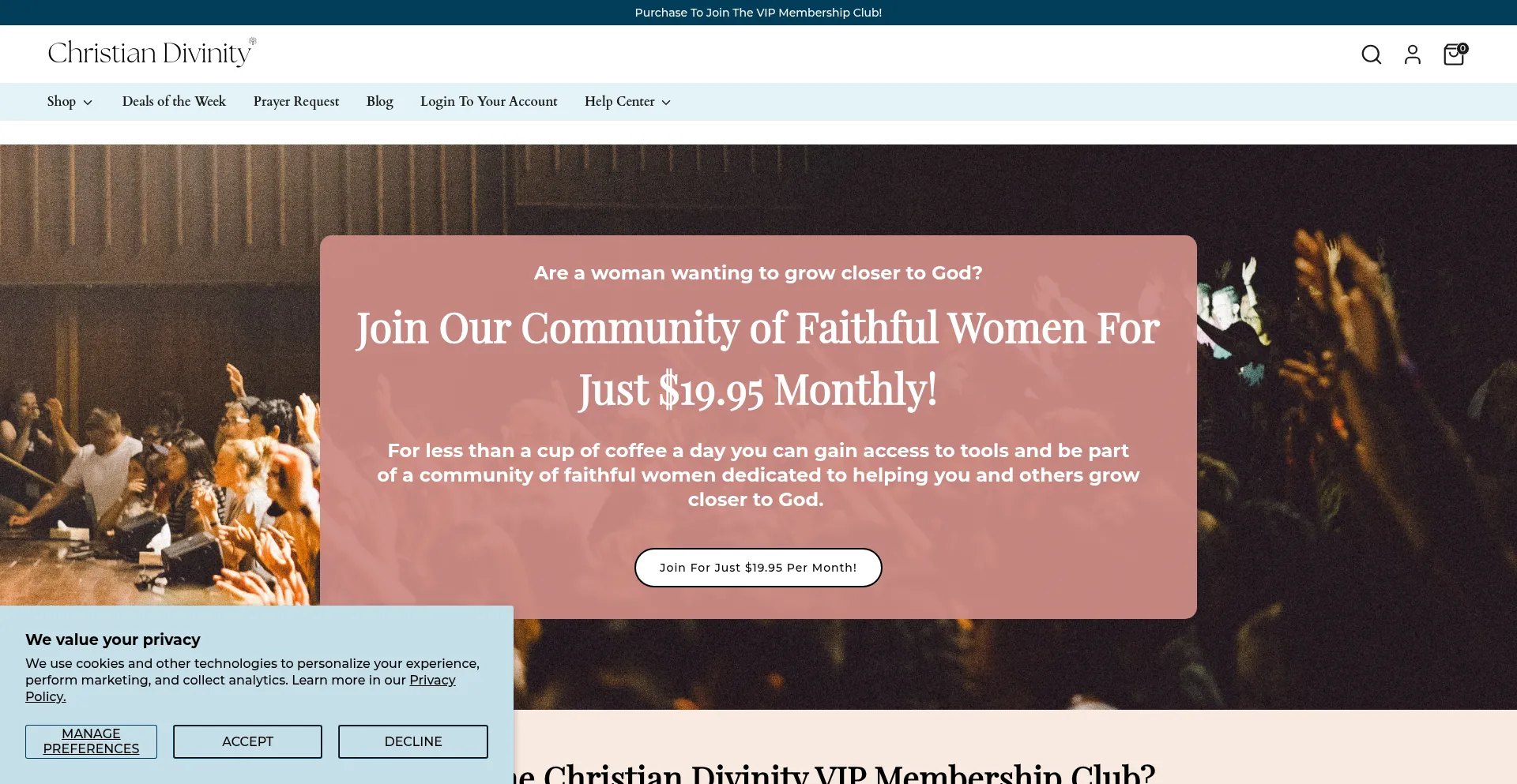 该网站实现符合GDPR或CCPA等隐私法规的cookie同意机制。这表明 christiandivinity.com 遵守数据保护标准并为用户提供对个人数据收集实践的控制。