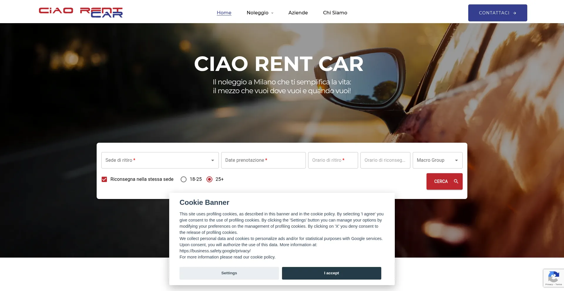 该网站实现数据收集表单,请求个人信息,包括姓名、电子邮件地址、电话号码或其他敏感详细信息。用户应验证 ciaorentcar.com 的合法性并在提交个人数据前查看隐私政策。