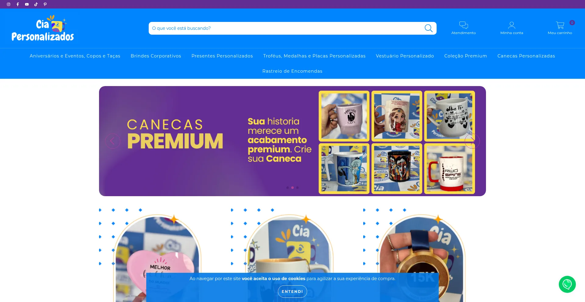 网站上存在社交媒体链接表明 ciapersonalizados.com.br 在社交媒体上维护官方账户,这是可信度和参与度的积极信号。