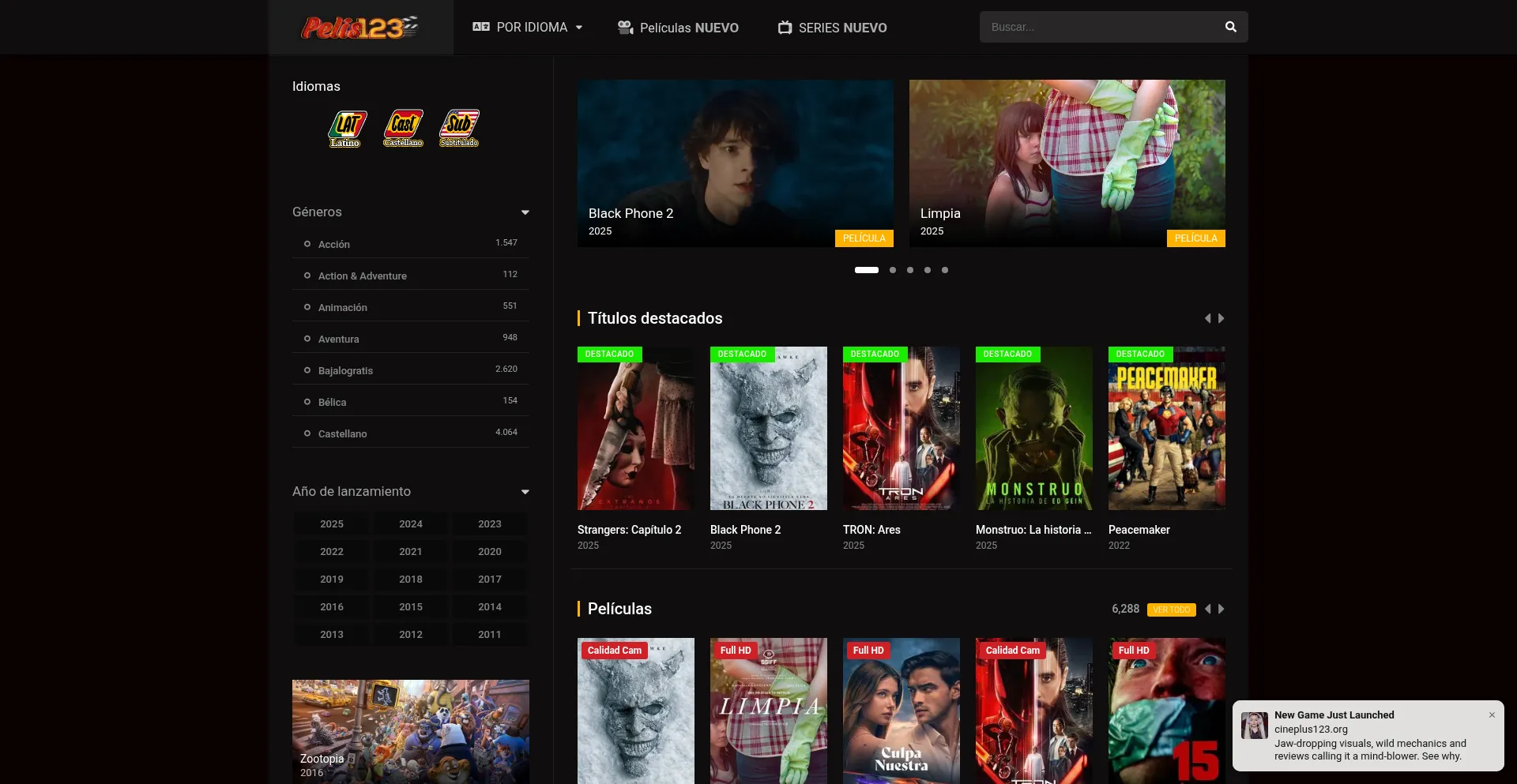PELIS123 - 123PELIS - PELICULAS123 - PELIS-123.org ❤️ Ver Peliculas y Series Gratis en español latino, Castellano e Ingles Subtitulado ✔️ Peliculas Online en 1080p y 4k.