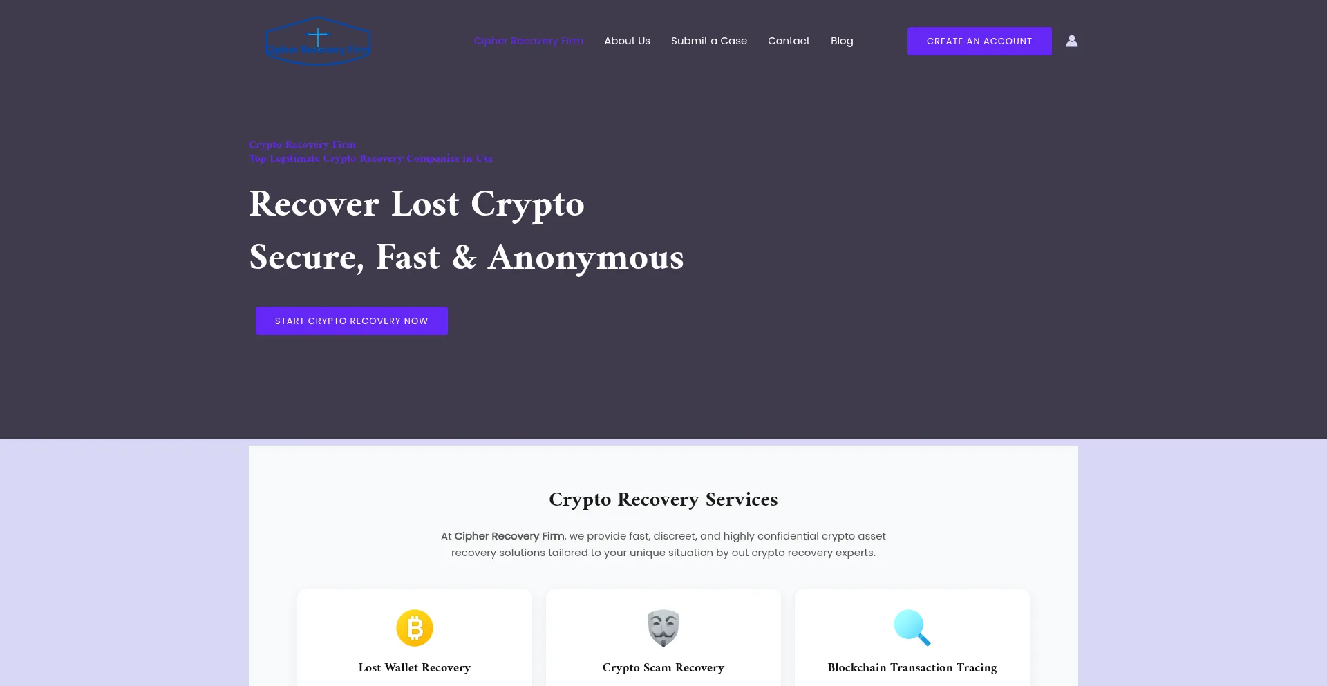 Cipherrecoveryfirm.com 运营 加密货币欺诈平台,通过欺诈性投资机会和社会工程攻击实施针对数字货币投资者的欺骗性方案。